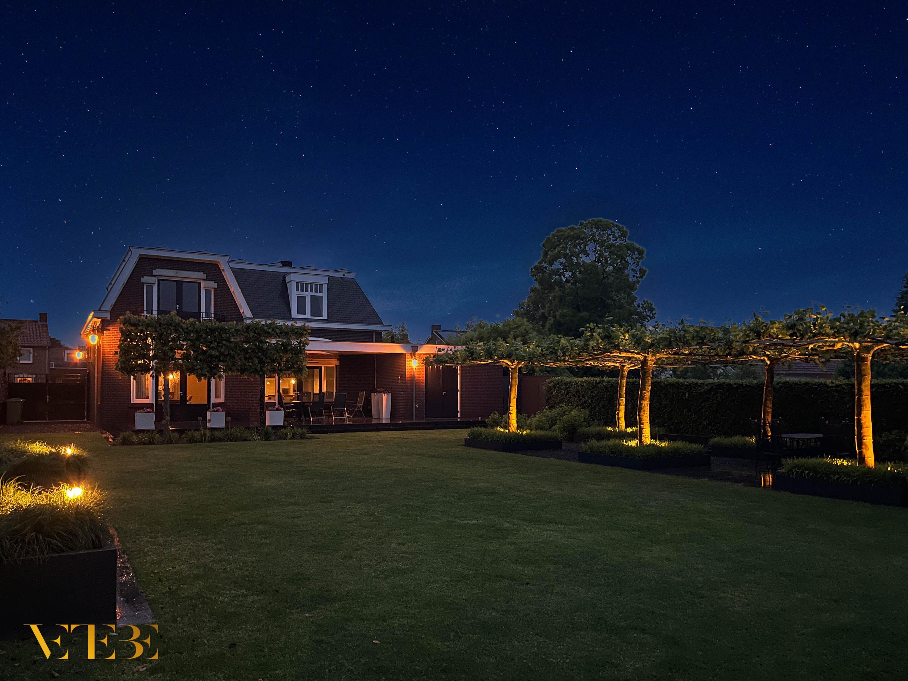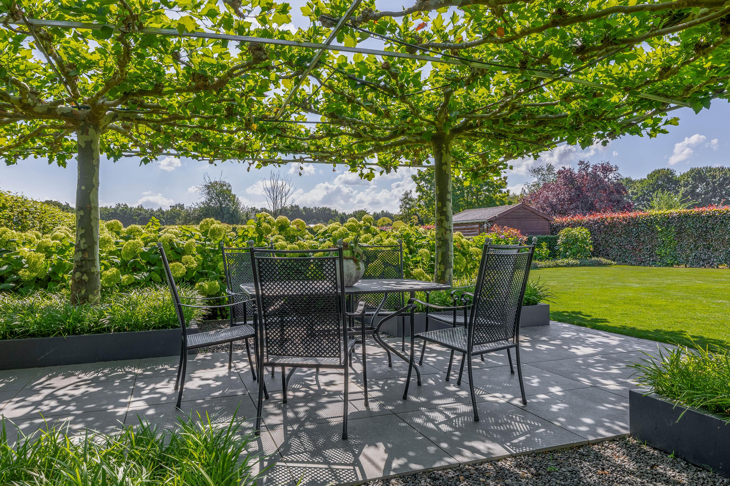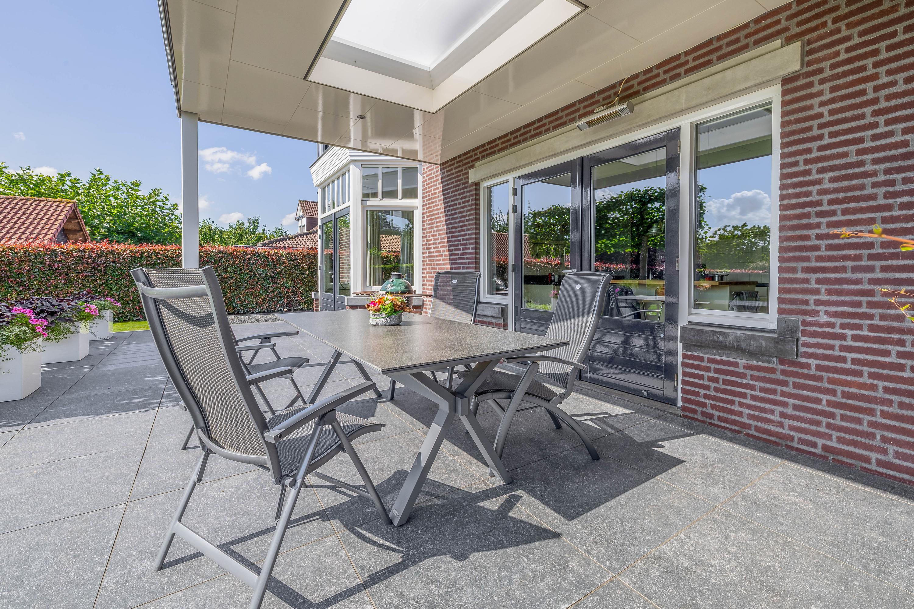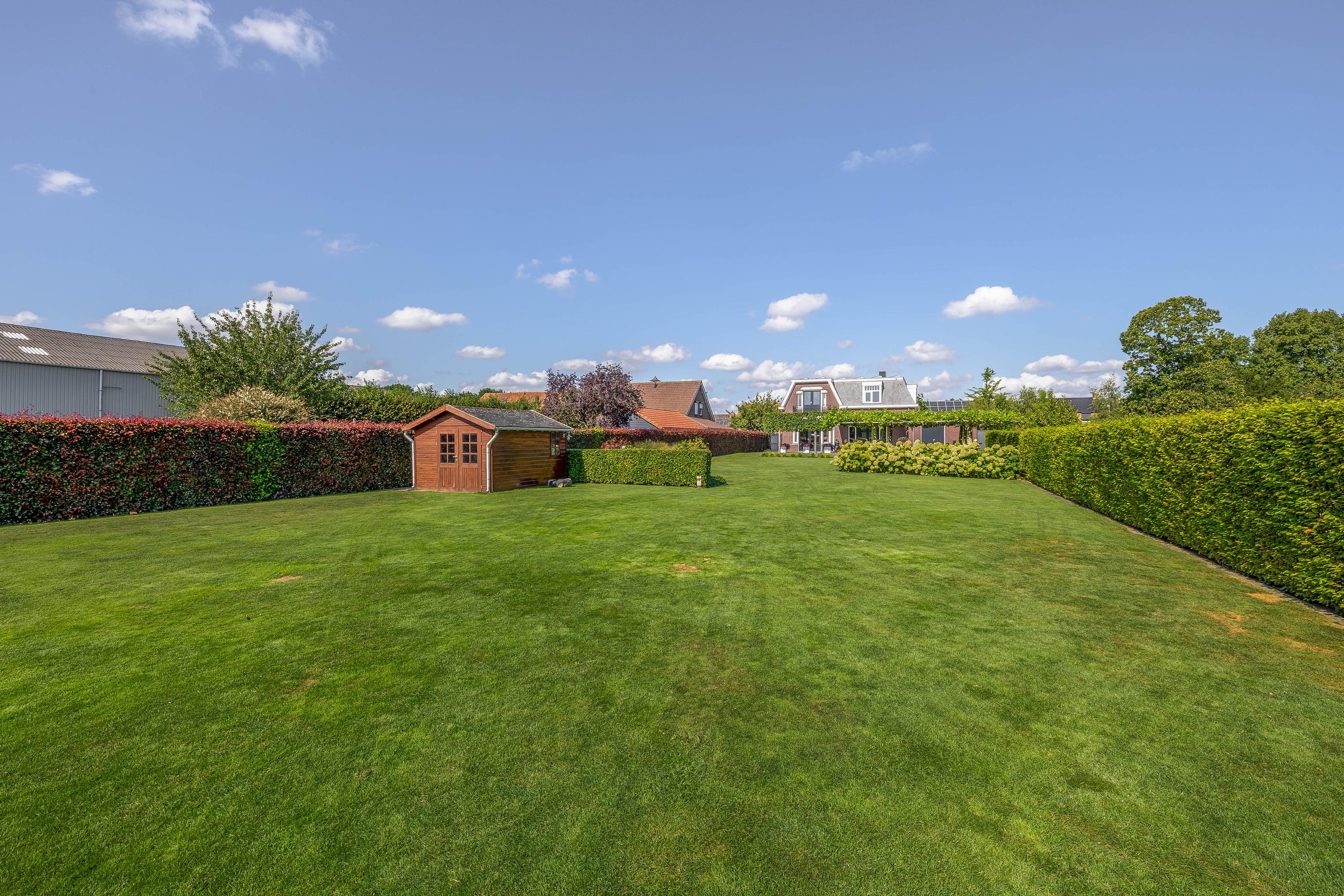 De zeer diepe en groene achtertuin is een oase van rust en biedt zeer veel privacy. De gehele tuin is omheind en prachtig aangelegd. Aan de woning is een grote overkapping met lichtkoepel aanwezig. Het houten tuinhuis is ca. 12m² en voorzien van elektra.