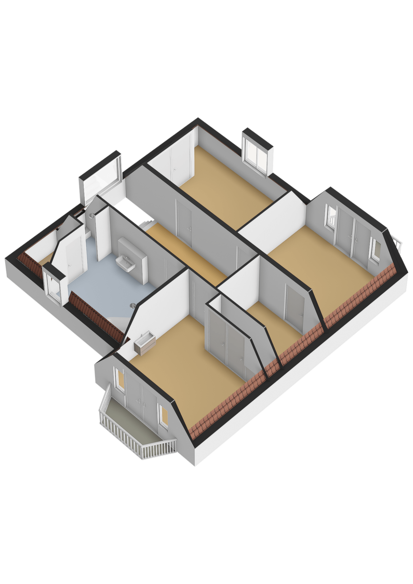 De royale en lichte overloop is voorzien van een tegelvloer, dakkapel en wasluik. Vanuit de overloop zijn de 3 slaapkamers, de badkamer en de berging bereikbaar.