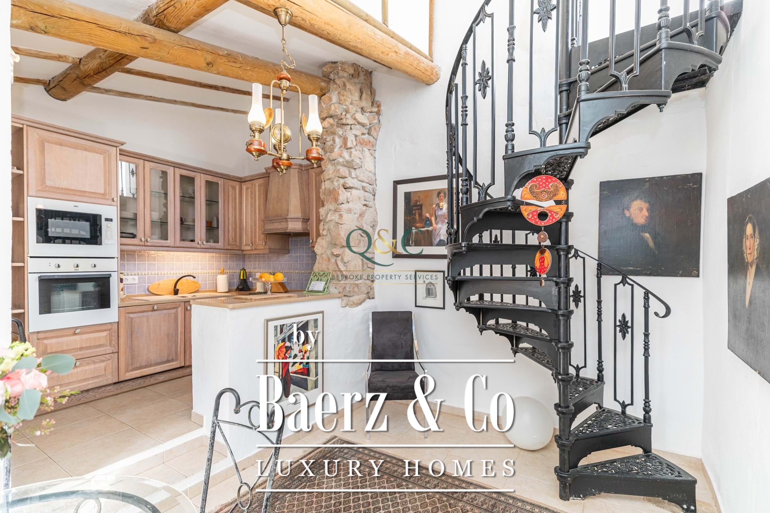Binnen zorgen twee slaapkamers met en-suite badkamers voor zowel stijl als functionaliteit, waarvan één met douche en de ander met ligbad én douche. De originele stenen muur in de volledig uitgeruste keuken en ontbijtruimte zorgt voor een tastbare verbinding met de plek, terwijl plafonds van bamboe en houten balken bijdragen aan de kenmerkende warmte van het huis. Een houtkachel en duo-therm radiatoren van natuursteen bieden comfortabel wonen in elk seizoen, aangevuld met airconditioning die entree en woonkamer subtiel koelt. Een extra kantoorruimte biedt veelzijdigheid en gemak.