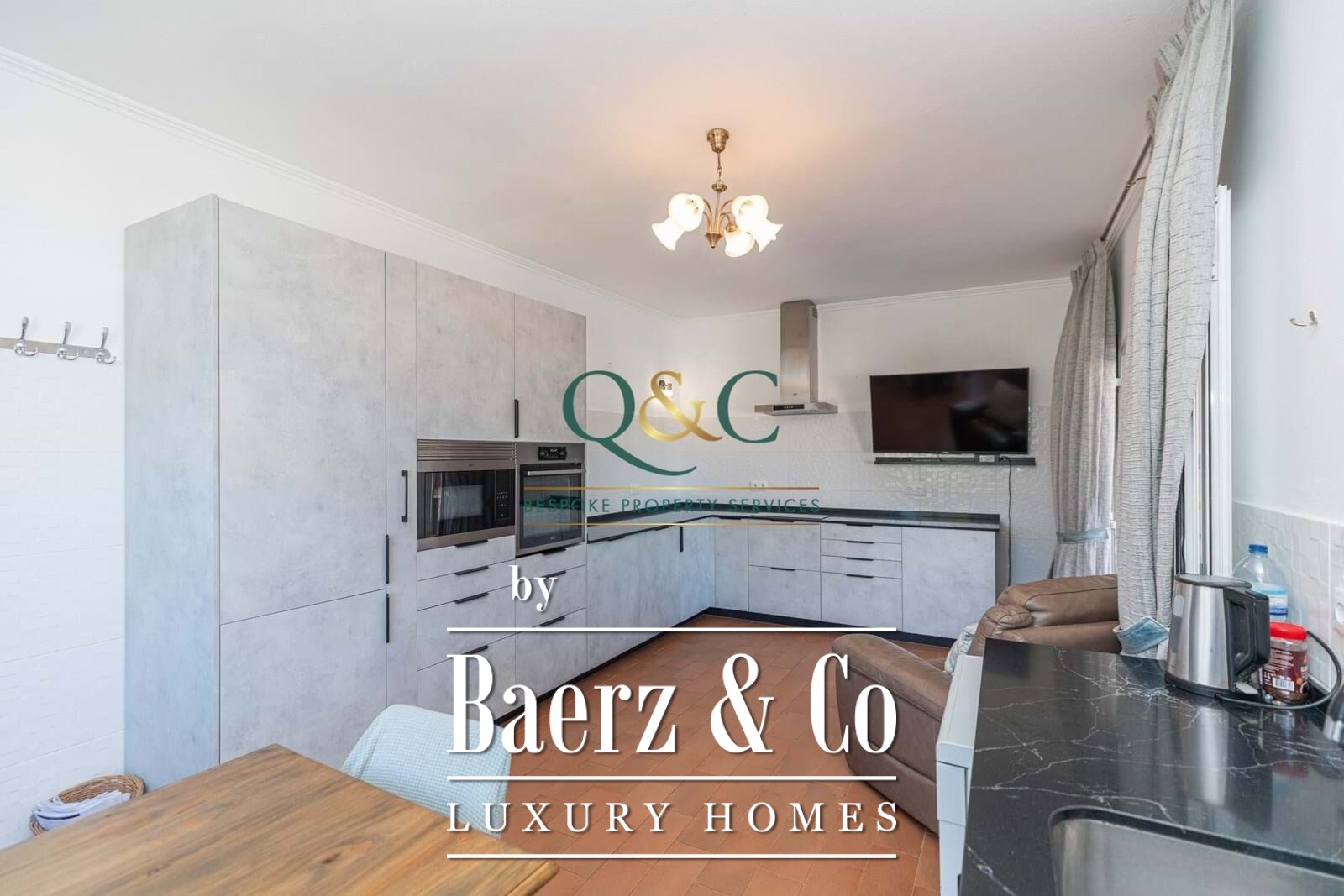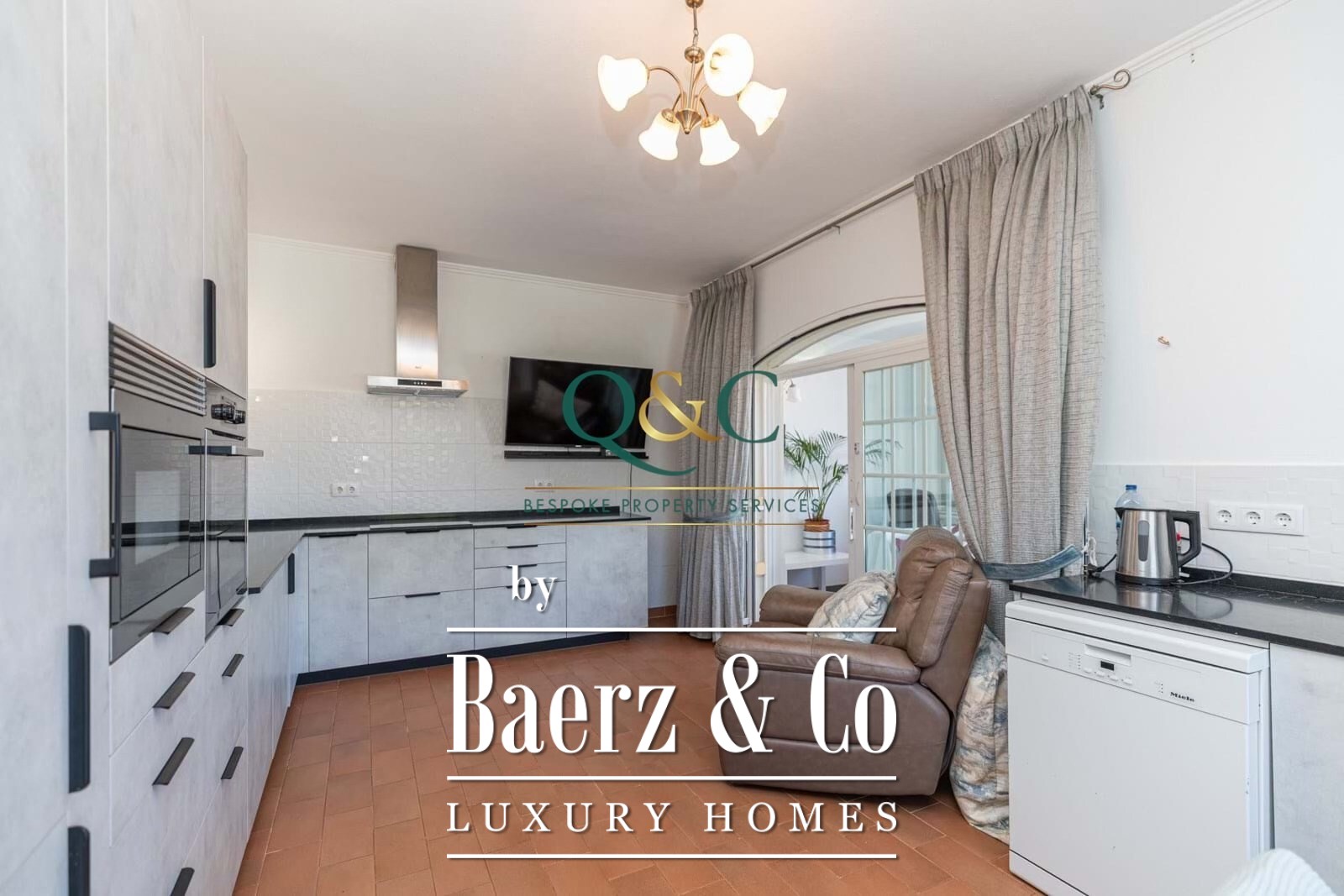 Er zijn drie ruim opgezette slaapkamers, waarvan één en suite, twee badkamers, en een flexibele kamer geschikt als kantoor of extra slaapkamer. De twee volledig uitgeruste keukens bieden veel opbergruimte en functionaliteit. Dubbel glas en airconditioning verzekeren comfort het hele jaar door, terwijl een open haard en jacuzzi voor extra luxe zorgen. De villa beschikt over een dakterras, horren, en elektrische poorten voor optimale privacy.