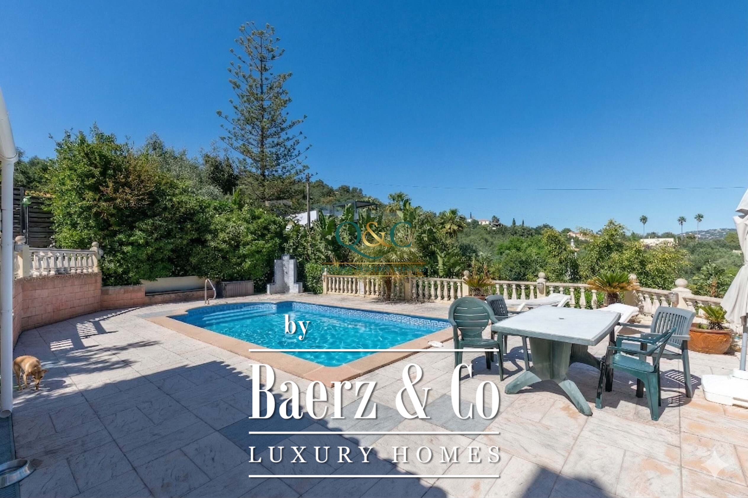 Buiten zorgen het vrije uitzicht over het landschap, het zwembad, en de schaduwrijke tuin voor een ontspannen sfeer. Ruime parkeergelegenheid, aansluiting op het riool en leidingwater dragen bij aan het wooncomfort. Dit object biedt een vredige retraite op korte afstand van stranden, golfbanen en de levendige sfeer van de jachthaven van Vilamoura.