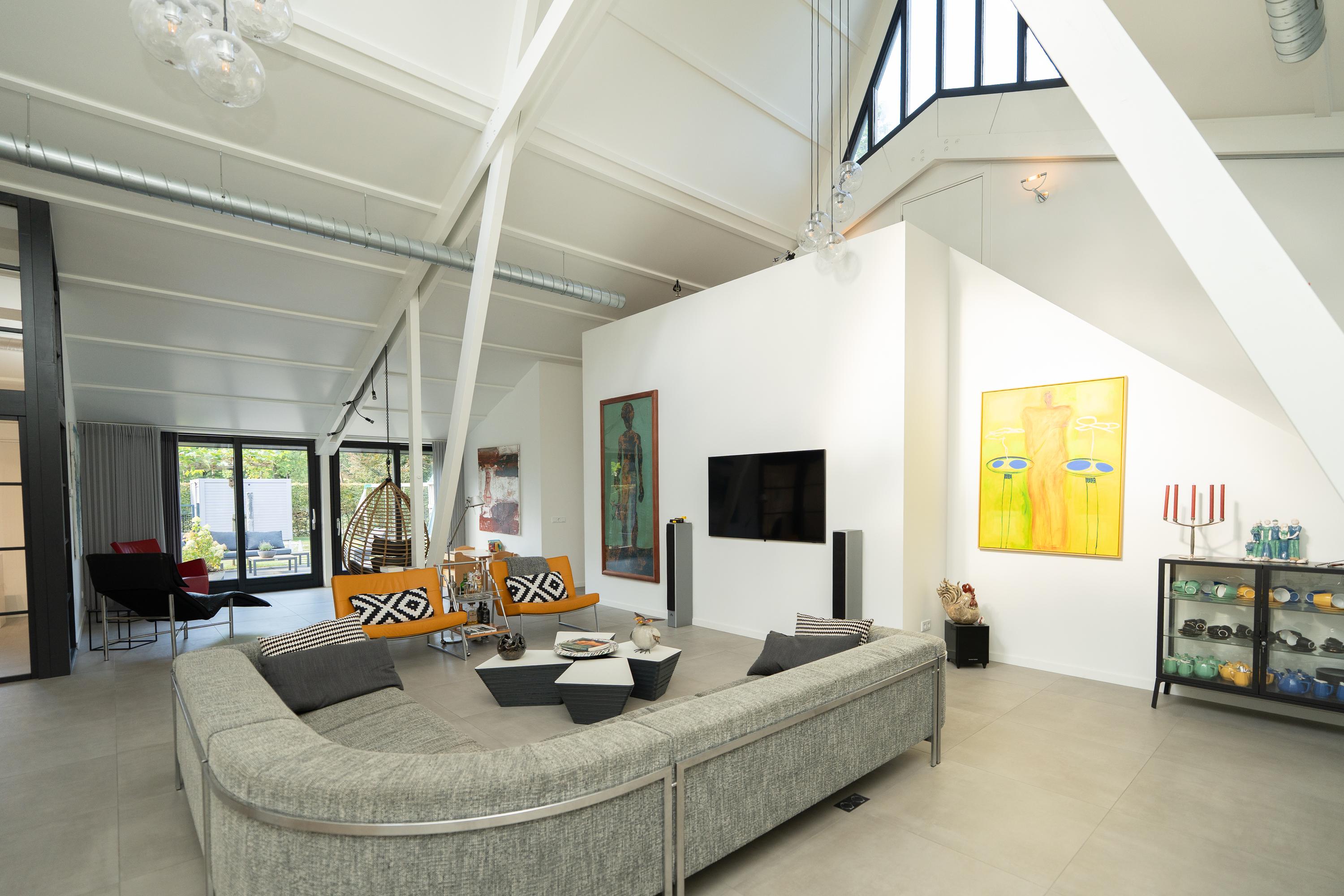 Vanuit de studeerkamer is de multifunctionele atelierruimte te bereiken. Deze ruimte heeft openslaande deuren aan de voor- en achterzijde met een omheind terras en beschikt over een eigen keuken en badkamer. De keuken is voorzien van diverse inbouwapparatuur en de badkamer heeft een inloopdouche, dubbele wastafel en een toilet.