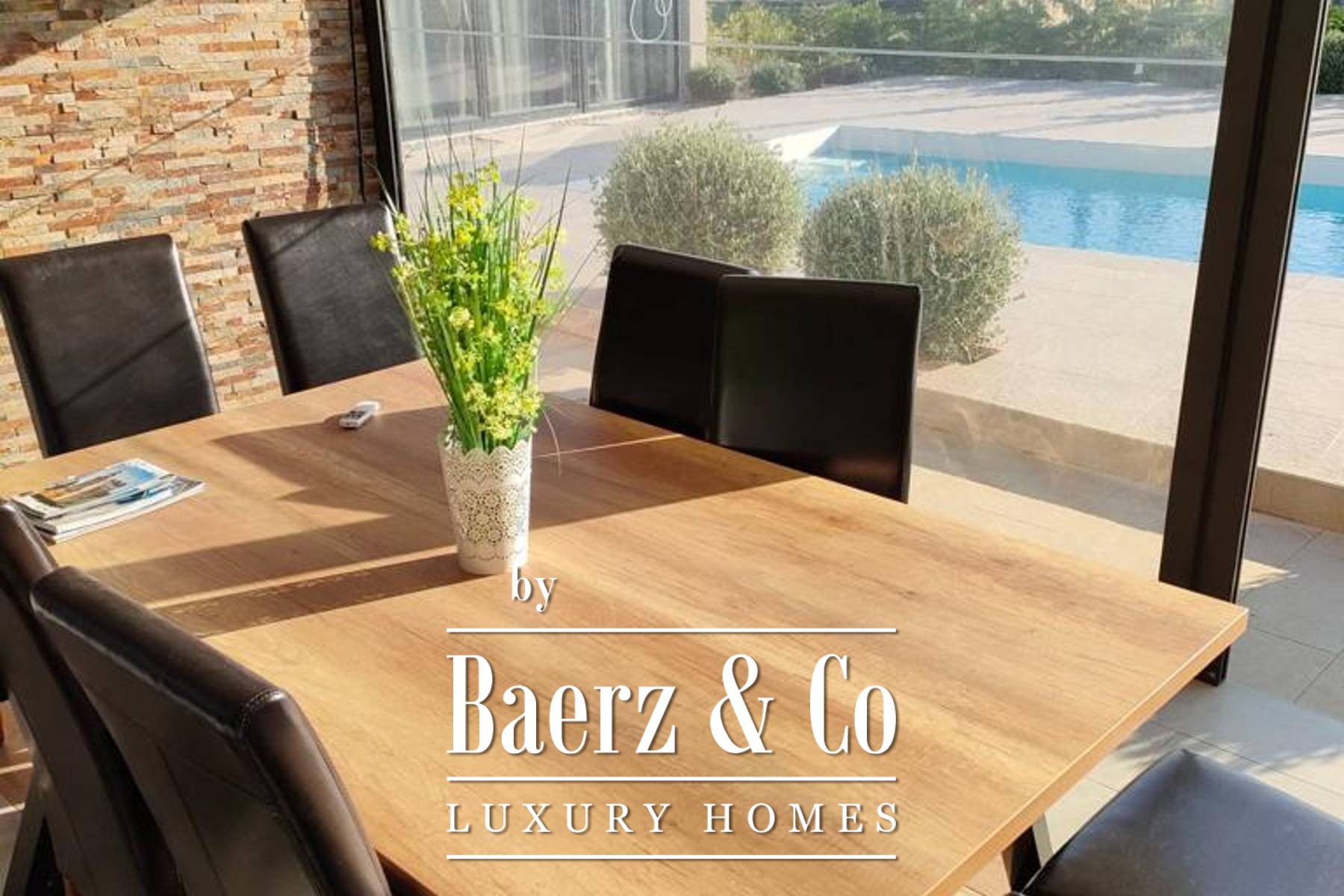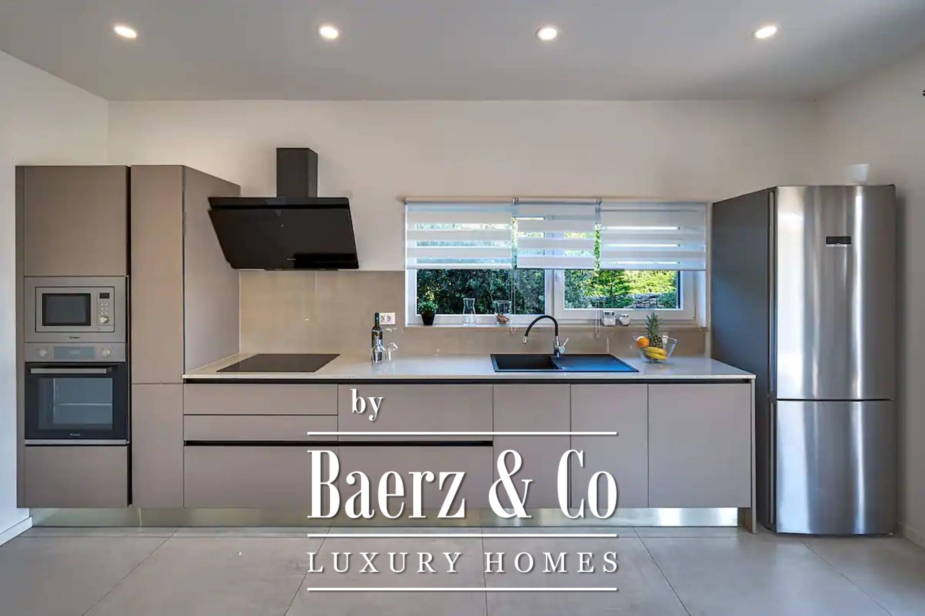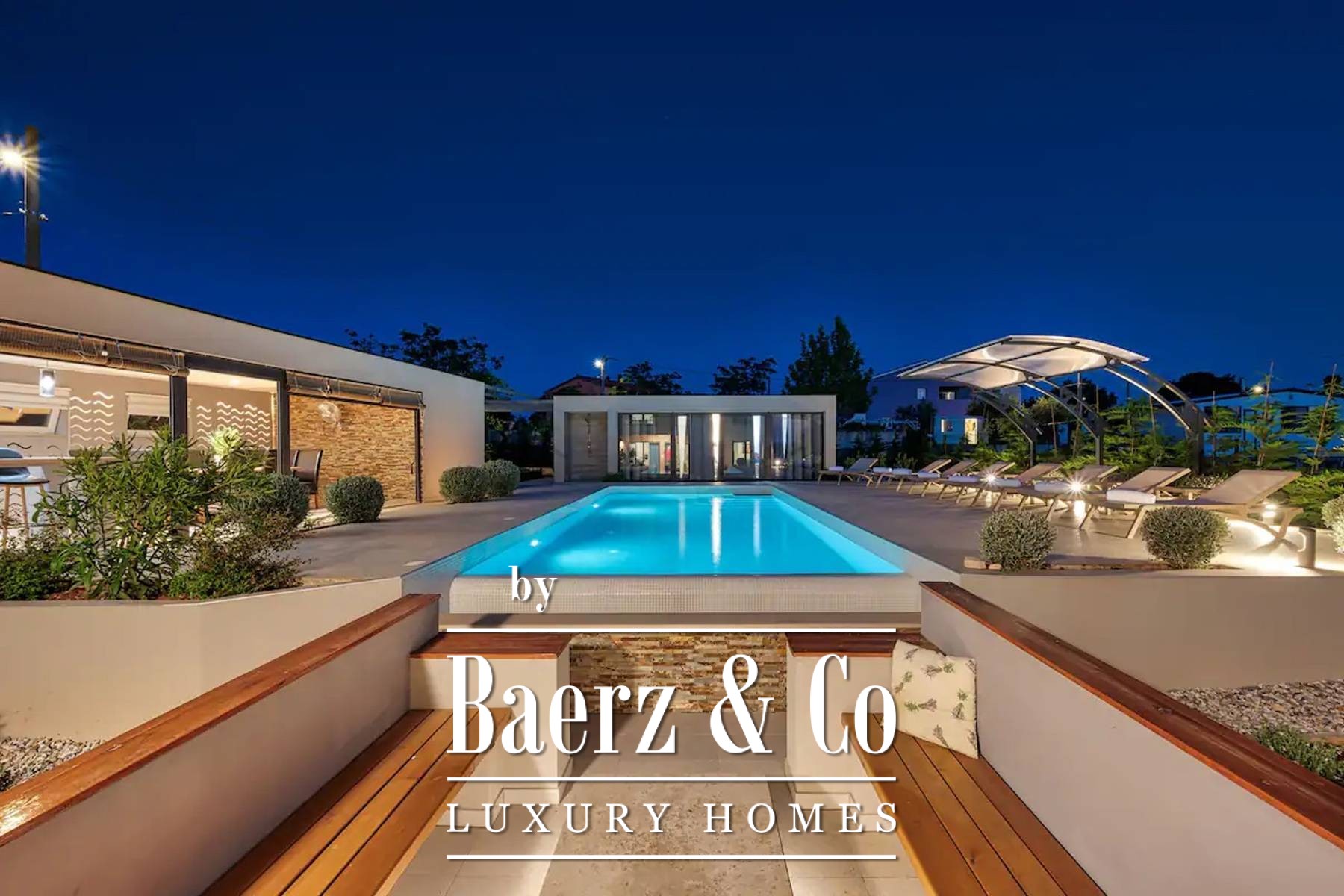 Villa Rakalj in Marčana, Kroatië, biedt een weloverwogen balans tussen moderniteit en rust. Deze villa beschikt over een woonoppervlakte van 315 m² in een serene omgeving, omgeven door een royaal perceel van 1.150 m². De architectuur staat in het teken van openheid, met veel natuurlijk licht in alle zes de slaapkamers en badkamers, en een beheerste, verfijnde sfeer door het hele huis. Twee zorgvuldig ingerichte keukens versterken het dagelijkse comfort en faciliteren zowel intieme bijeenkomsten als feestelijke momenten.