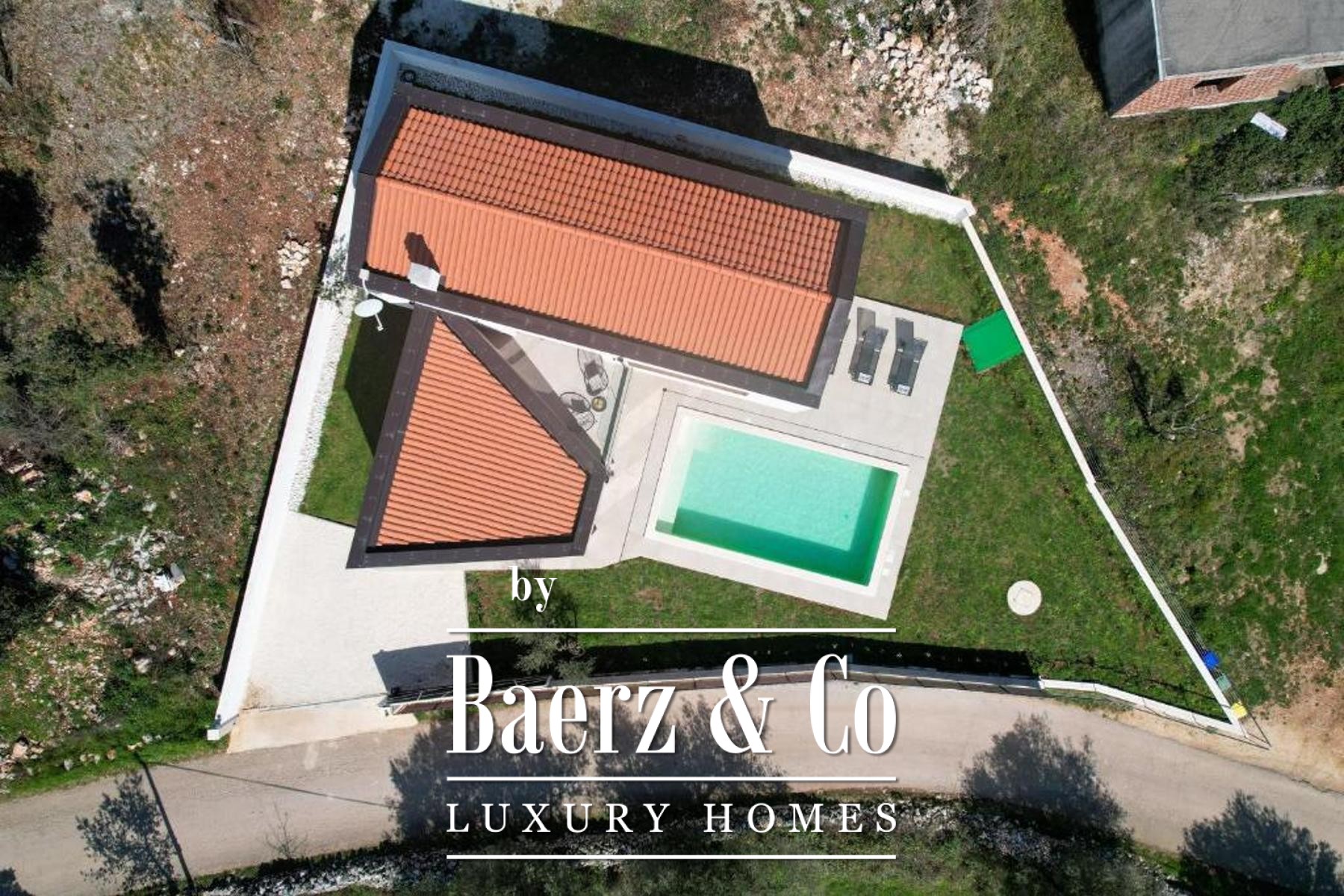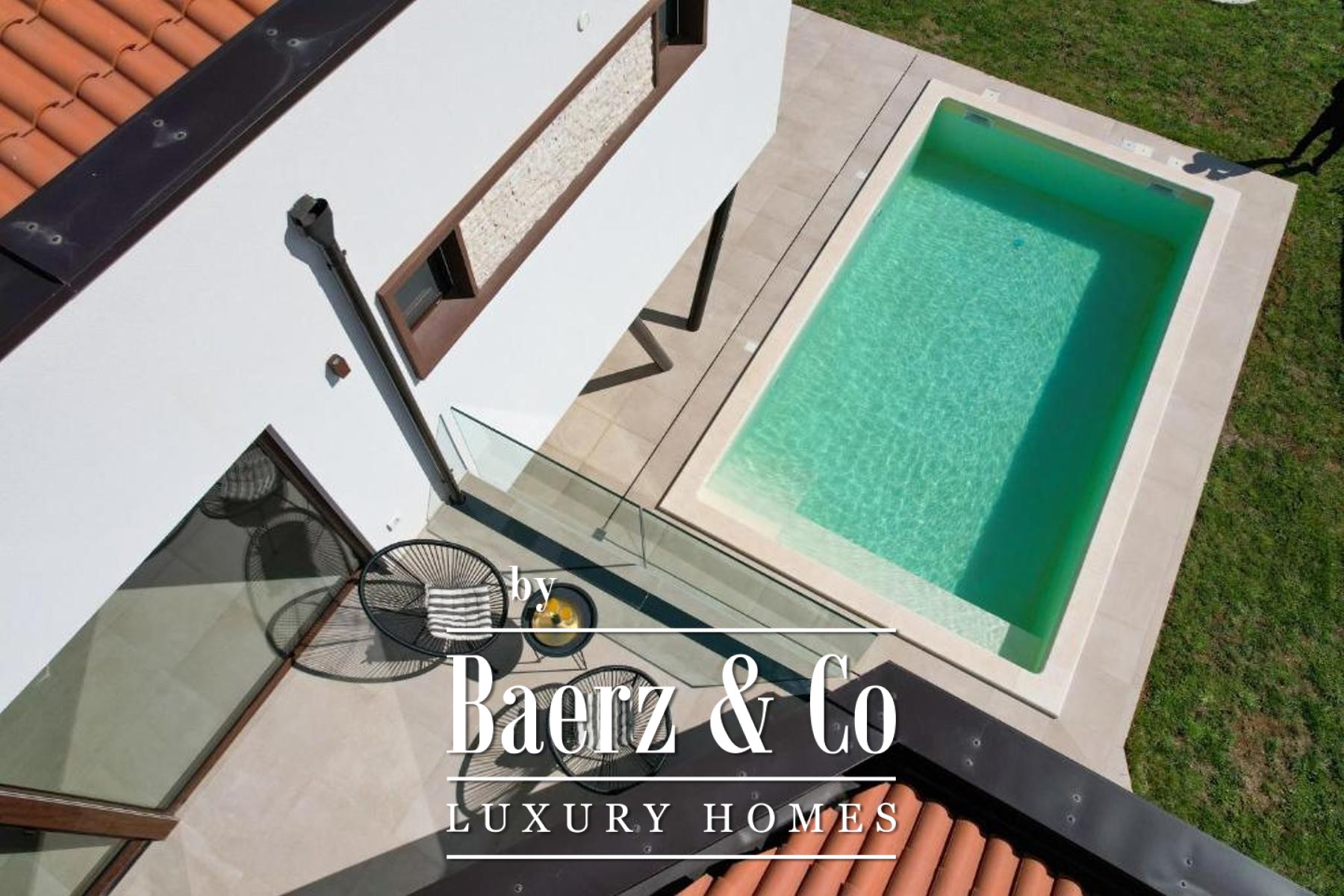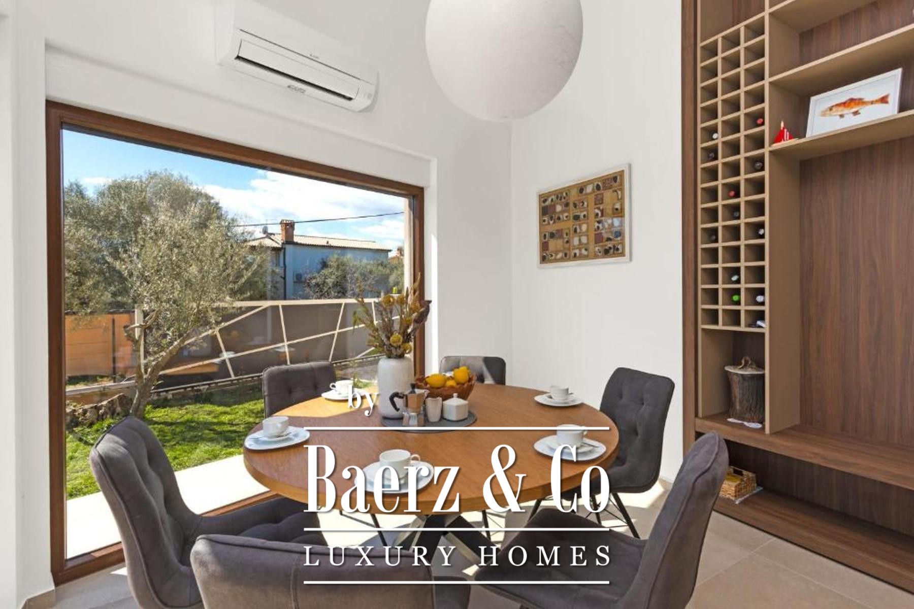 Buiten zorgt de aangelegde tuin van 500 m² voor privacy en rust, met als middelpunt een zwembad dat is voorbereid op de installatie van een verwarmingssysteem. Een overdekte zomerkeuken, decoratieve beplanting en een olijfboom herinneren aan de mediterrane ambiance, omlijst door omheining, een stenen muur en een schuifpoort. Deze moderne villa Marčana combineert sereniteit, design en de nabijheid van de Adriatische kust.
