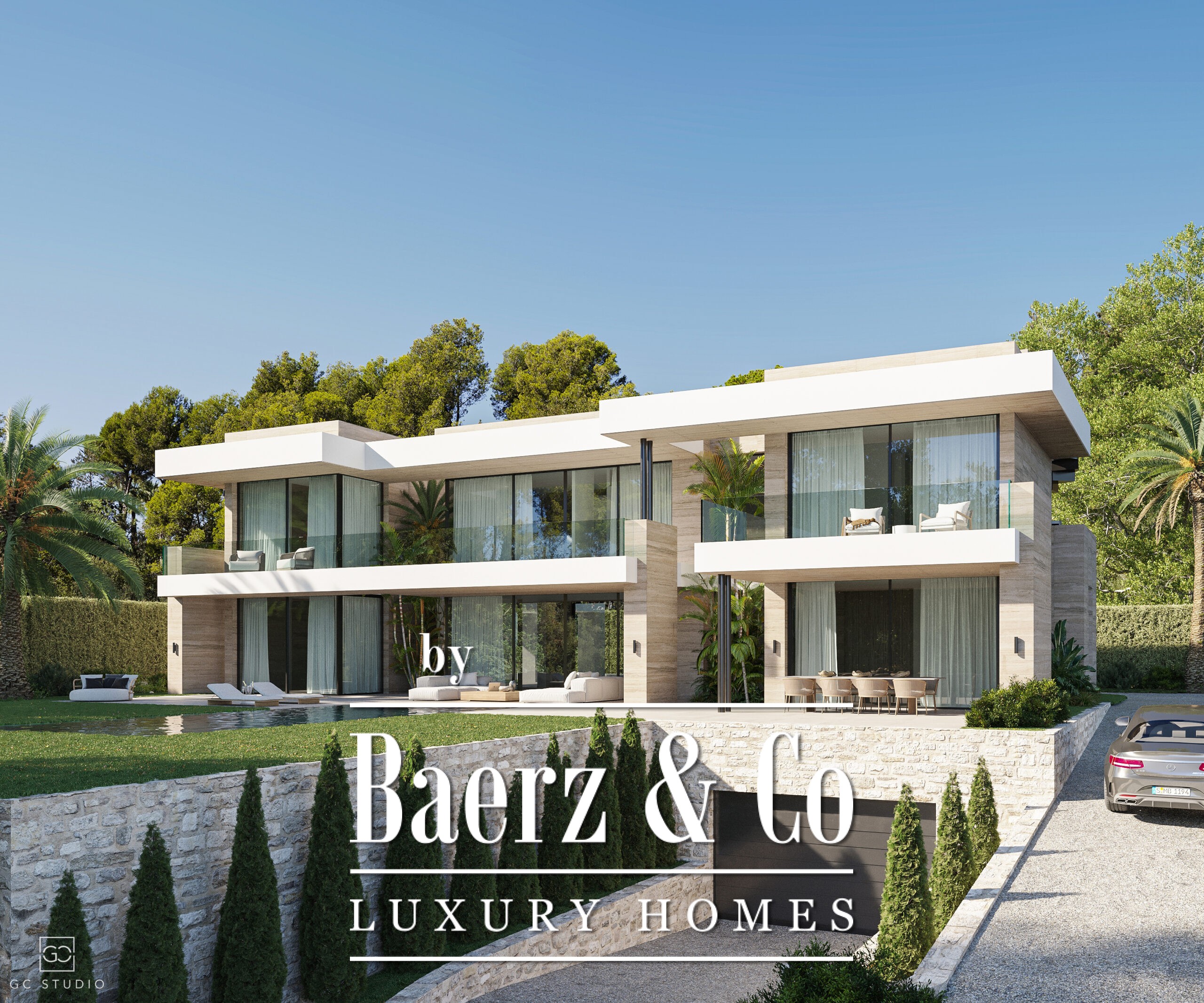 Villa Marbella ligt discreet verscholen achter haar eigen doodlopende oprijlaan, op een eersteklas hoekperceel van 1.364 m² met weids uitzicht op zee. Deze nieuw gebouwde villa, met een woonoppervlakte van 919 m² verdeeld over drie verdiepingen en een dakterras, combineert verfijnde architectuur met hoogwaardige materialen tot een woonbeleving die even indrukwekkend als subtiel is. De royale leefruimtes openen zich naar het licht en het panoramische uitzicht, terwijl geavanceerde domotica, vloerverwarming en selecte afwerkingen dagelijks comfort versterken.