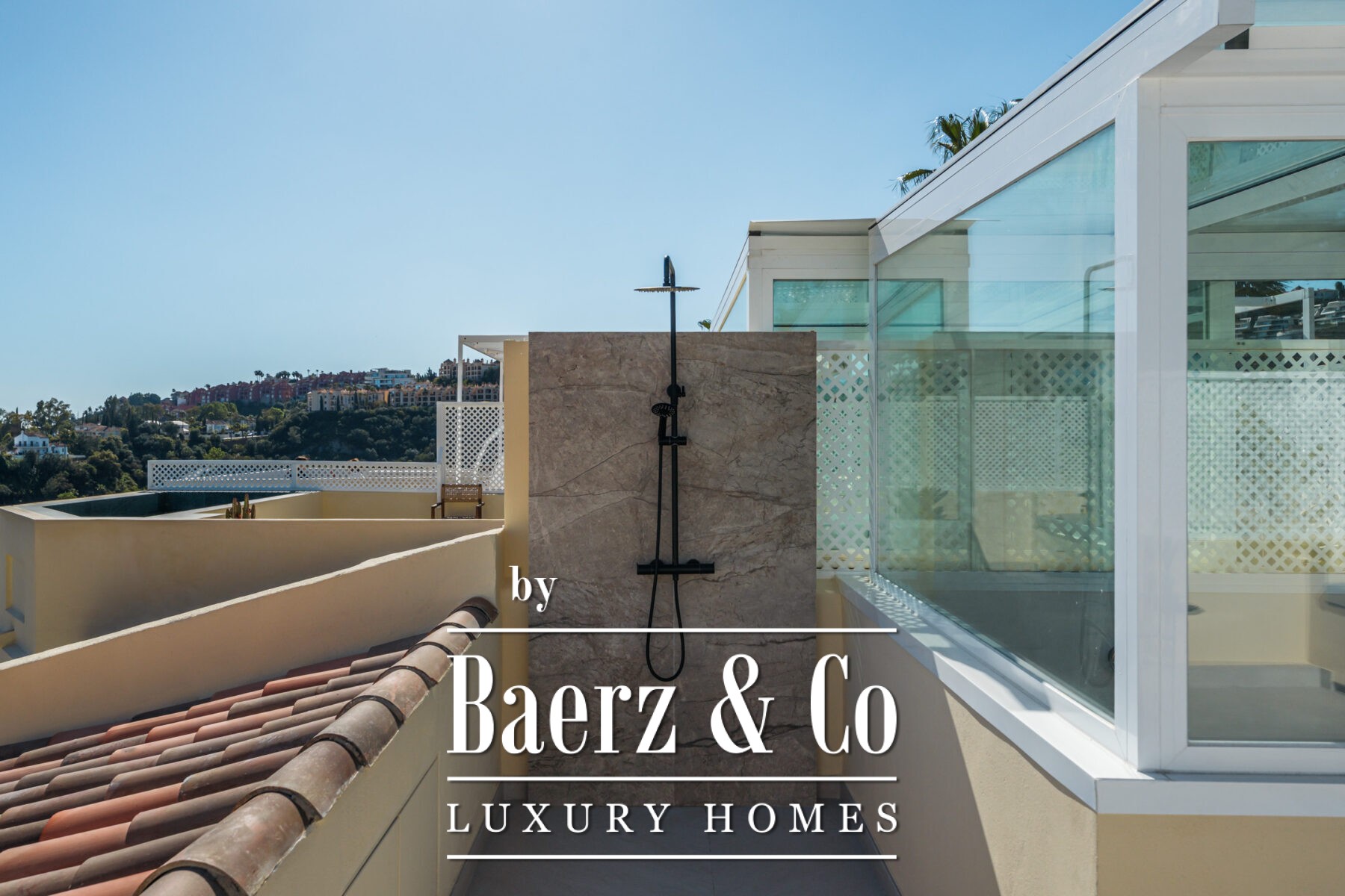 Crowning the property is the rooftop solarium, a highlight of this luxury townhouse. From this elevated space, residents can enjoy panoramic views of the Mediterranean and the iconic La Concha mountain. Outfitted with a built-in lounge, bioethanol fireplace, bar area, outdoor shower, and sunbeds, this space invites year-round use and relaxation.