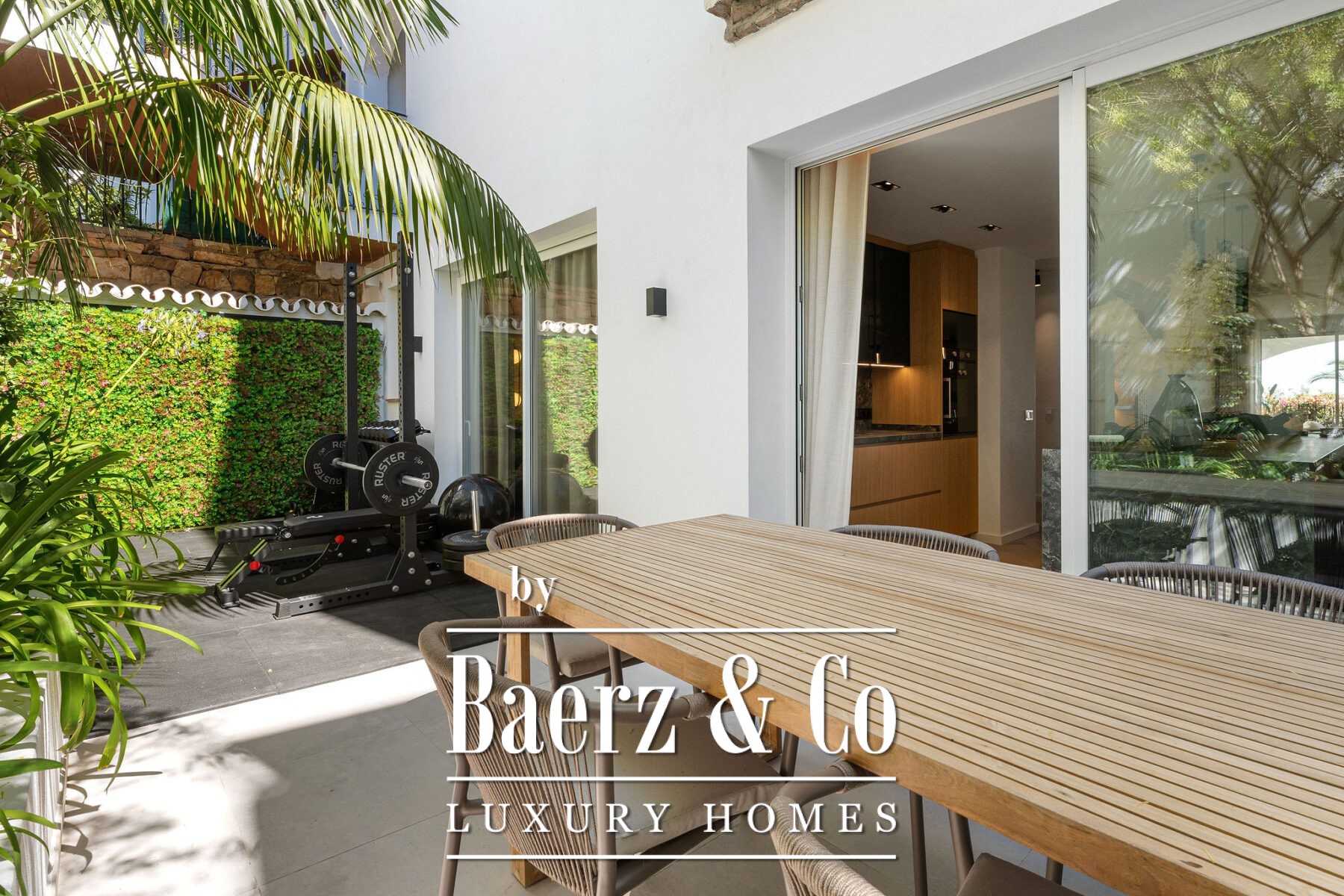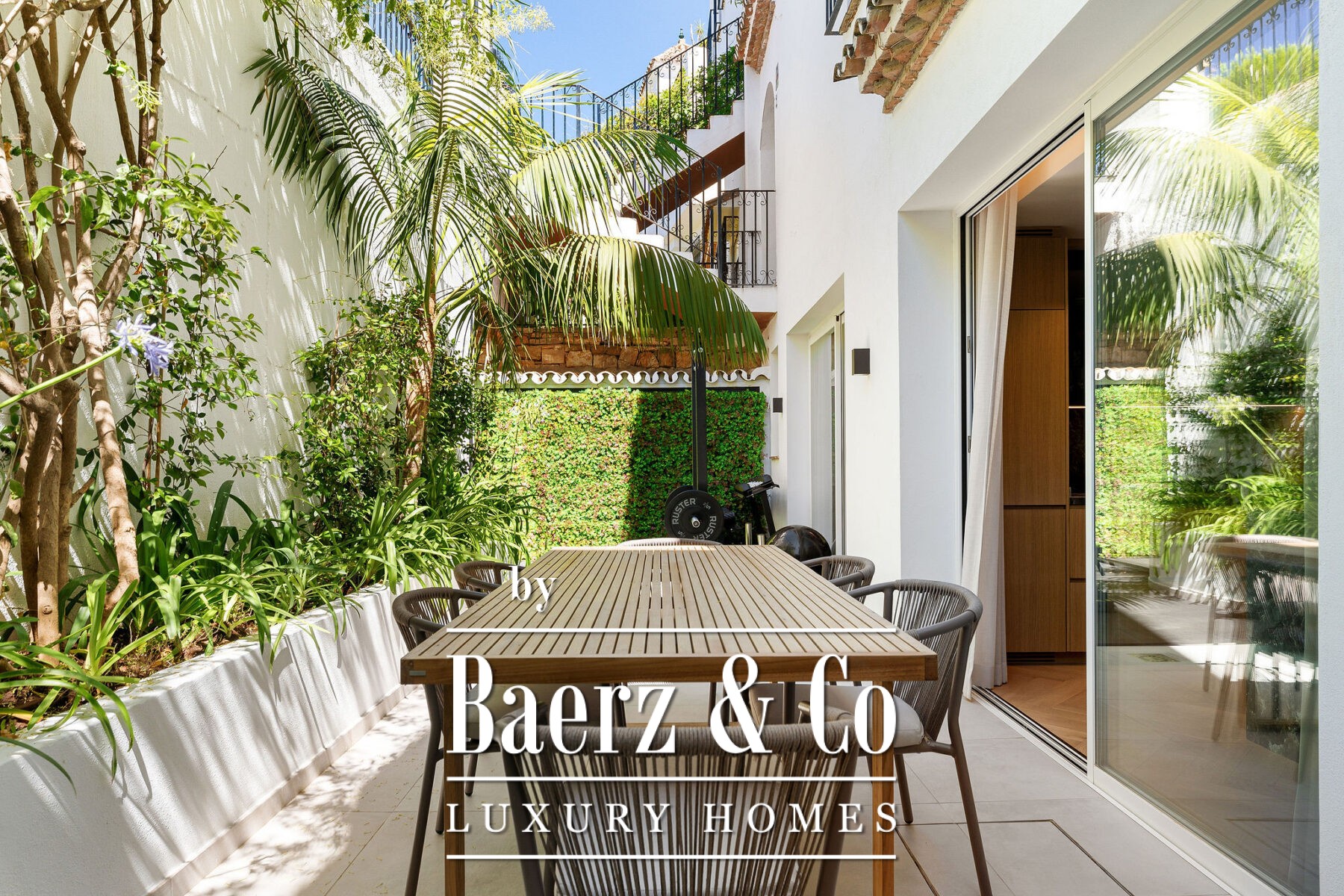 An exceptional two-storey townhouse for sale in the prestigious Golden Mile, a highly sought-after area known for its refined residences, excellent amenities, and seamless connectivity to Marbella's finest offerings. This newly renovated home perfectly balances Scandinavian-inspired elegance with modern functionality, presenting an ideal living space for those seeking comfort and style in a prime location.