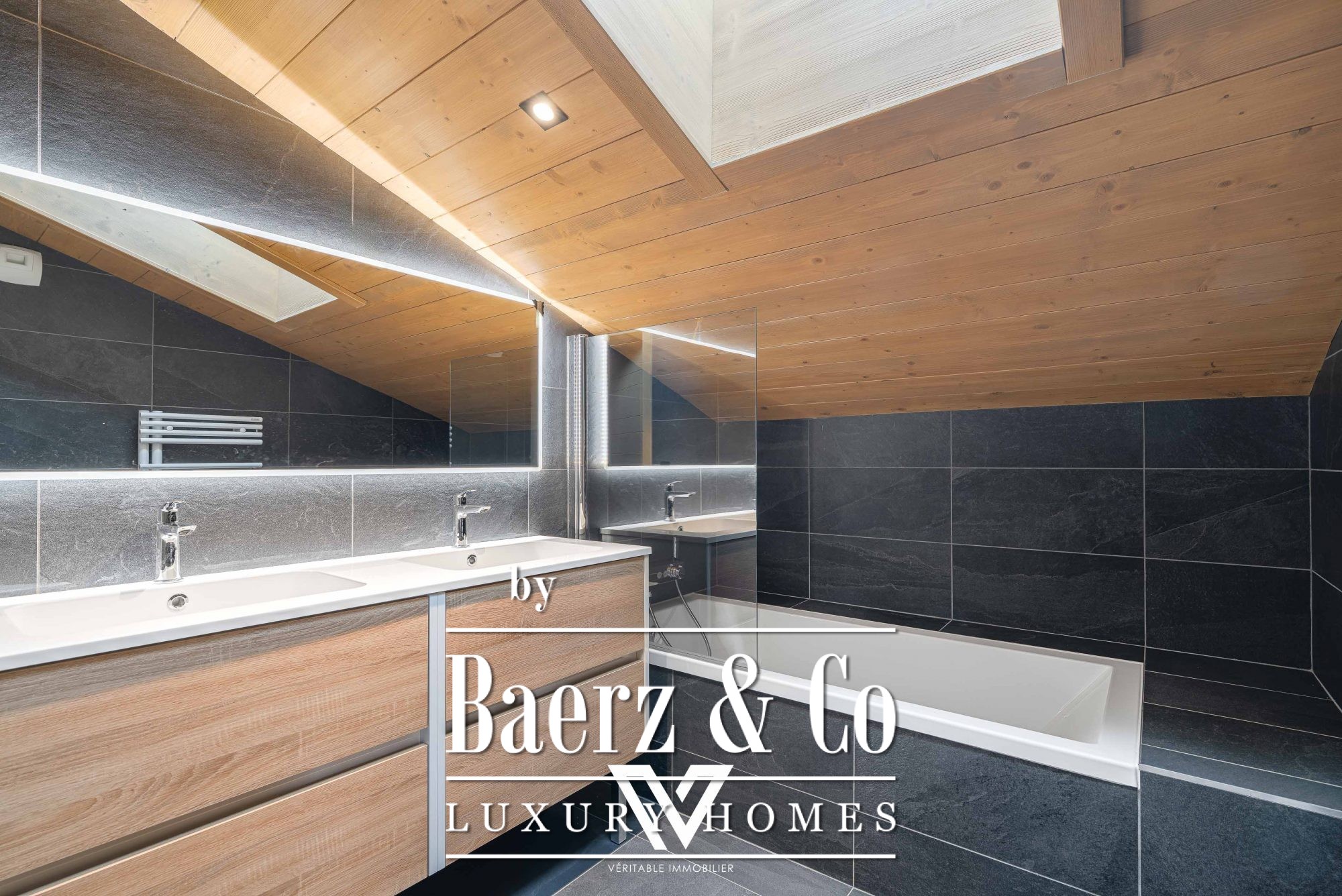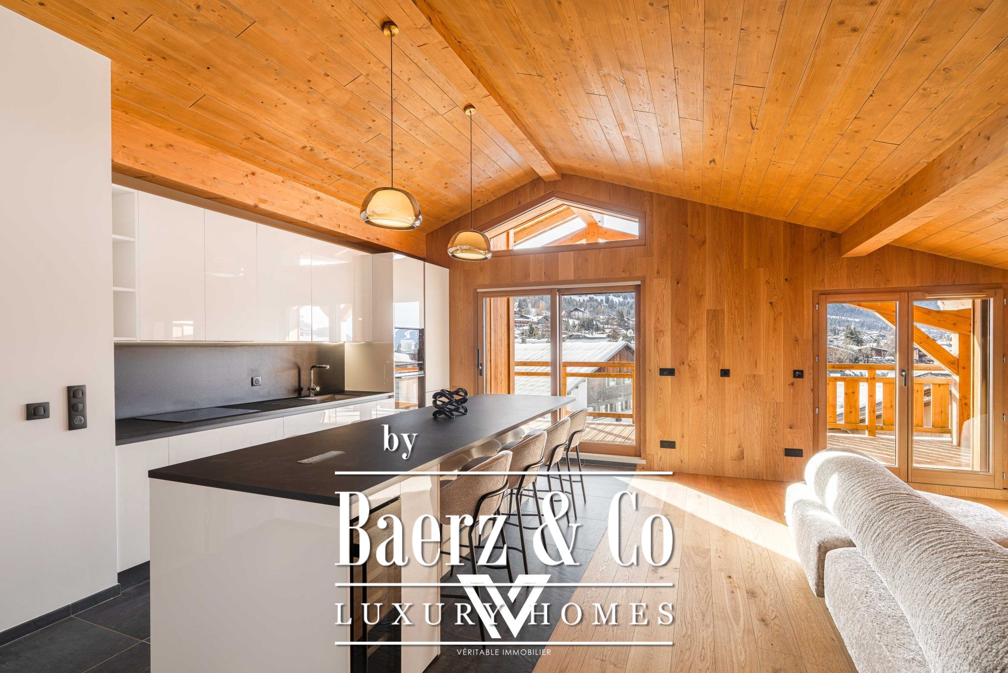 Appartement Megève is een verfijnd alpien toevluchtsoord en beslaat de gehele bovenste verdieping van een discreet chalet, op slechts enkele passen van het dorpscentrum en de skipistes. Dit eigendom van 126 m² baadt in natuurlijk licht, waarbij elk raam een panoramisch uitzicht op de bergen biedt dat een gevoel van plaats en rust oproept.