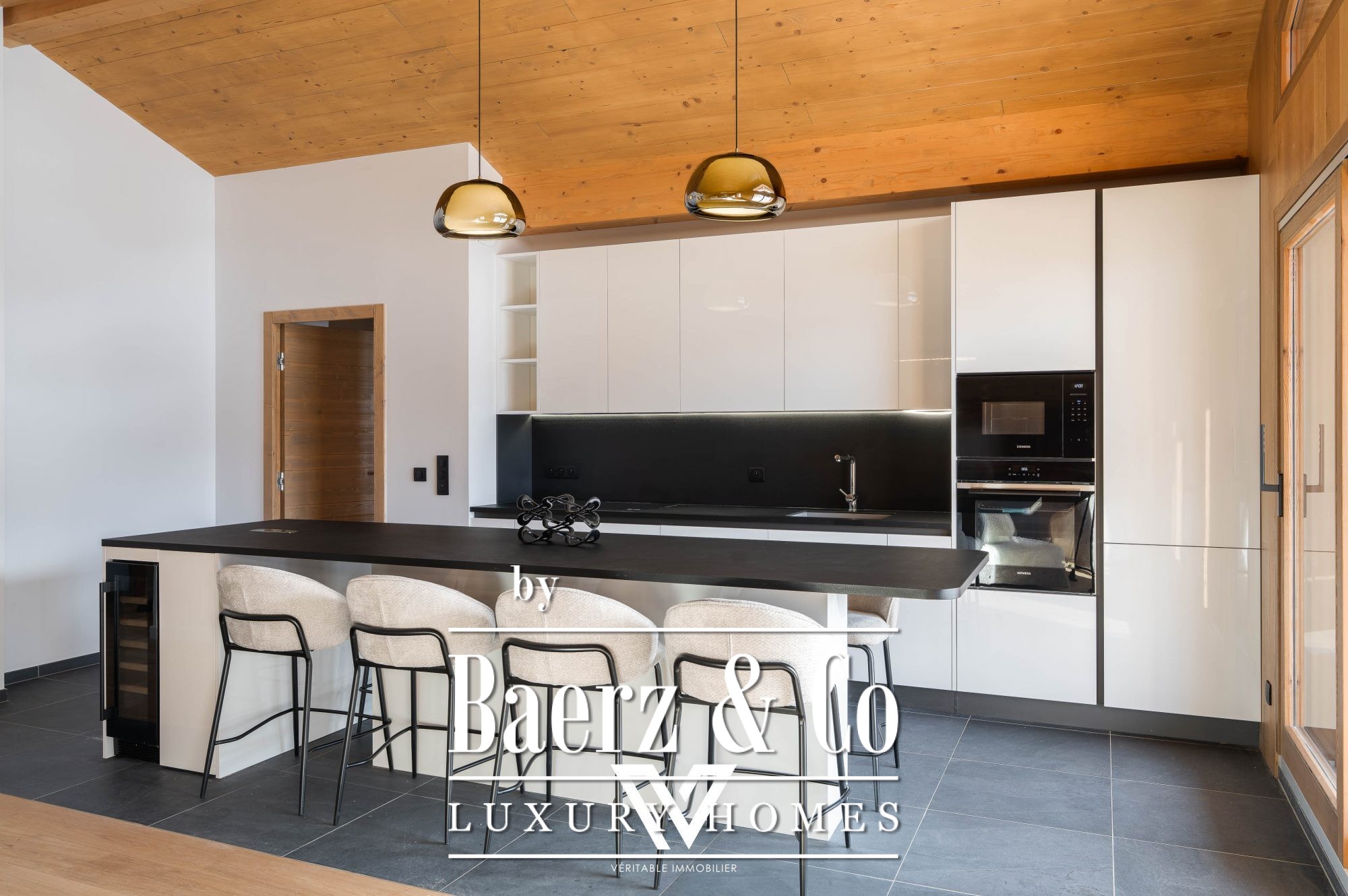 Deze nieuwbouw te koop in Megève onderscheidt zich door de zeldzame combinatie van royale leefruimte, privacy en een zeer gewilde ligging binnen een intiem residentieel complex van slechts twaalf appartementen.