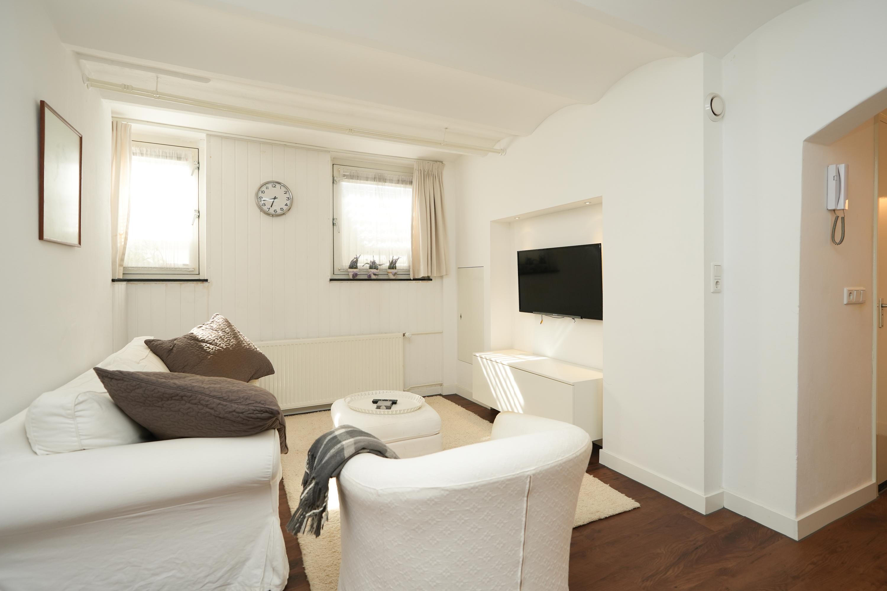 Middels een vaste trap is de bovenste verdieping bereikbaar, hier bevindt zich een ruime woonkamer met een bedstee. Tevens is er een moderne dichte keuken met witgoedaansluiting en er is een functionele badkamer met toilet en douche. Deze verdieping is sfeervol doordat de originele constructiebalken zichtbaar zijn gebleven en de ruimte is lekker licht door de dakramen. Bovendien is er veel bergruimte in vaste kasten.