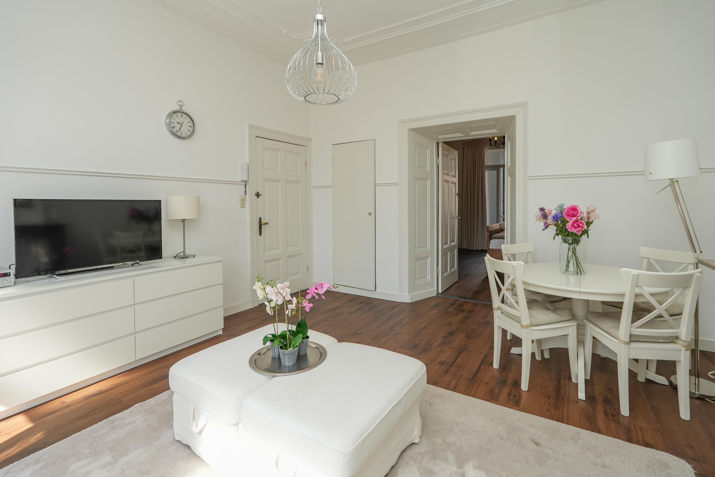 Statige hal/entree met meterkast en prachtig authentiek trappenhuis met marmeren vloeren, woonkamer en suite en eetkamer met schuifpui. In de kamer aan de voorzijde zijn de originele vensterbanken nog aanwezig, hier kan je lekker van de ochtendzon genieten. Via een tussenhal zijn het toilet, keuken en slaapkamer met badkamer bereikbaar. De sfeervolle binnentuin is toegankelijk zowel vanuit de eetkamer als de slaapkamer. De ruime keuken heeft een U-opstelling met inbouwapparatuur en een barretje.