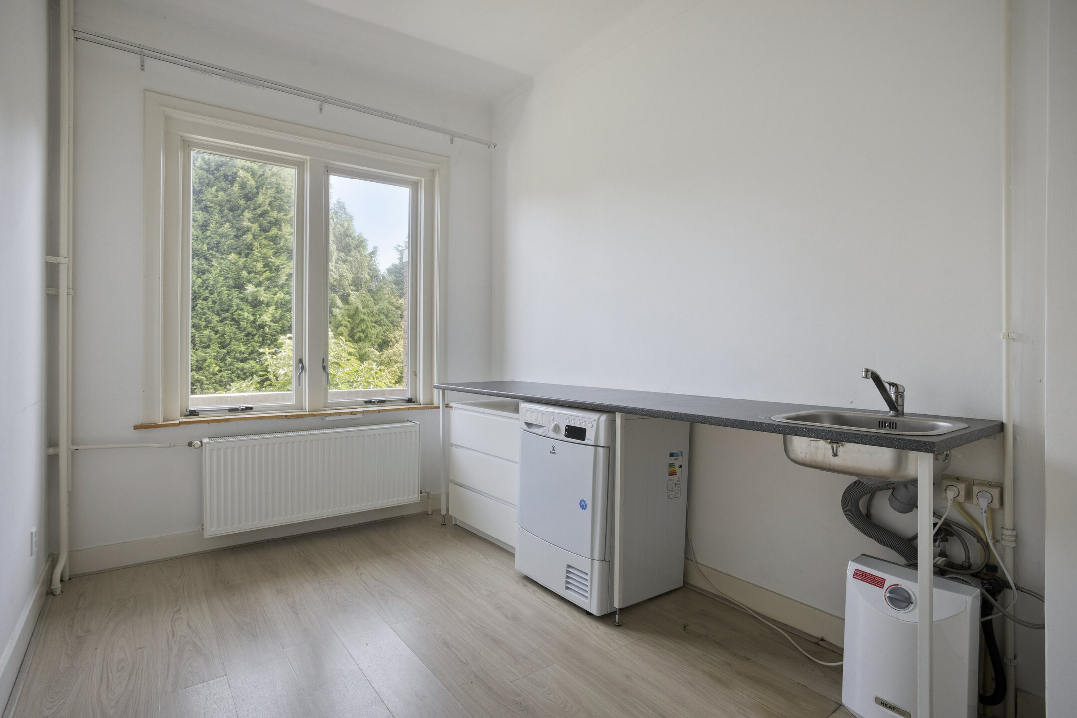 Veel authentieke details zijn bewaard gebleven en geven het huis zijn karakteristieke sfeer: hoge plafonds, glas-in-loodramen, houten vloeren en klassieke lambriseringen. Aan de voorzijde ligt een ruime voortuin, terwijl de diepe, zonnige achtertuin volop privacy en mogelijkheden biedt – ideaal voor een groot gezin en heerlijk buitenleven.