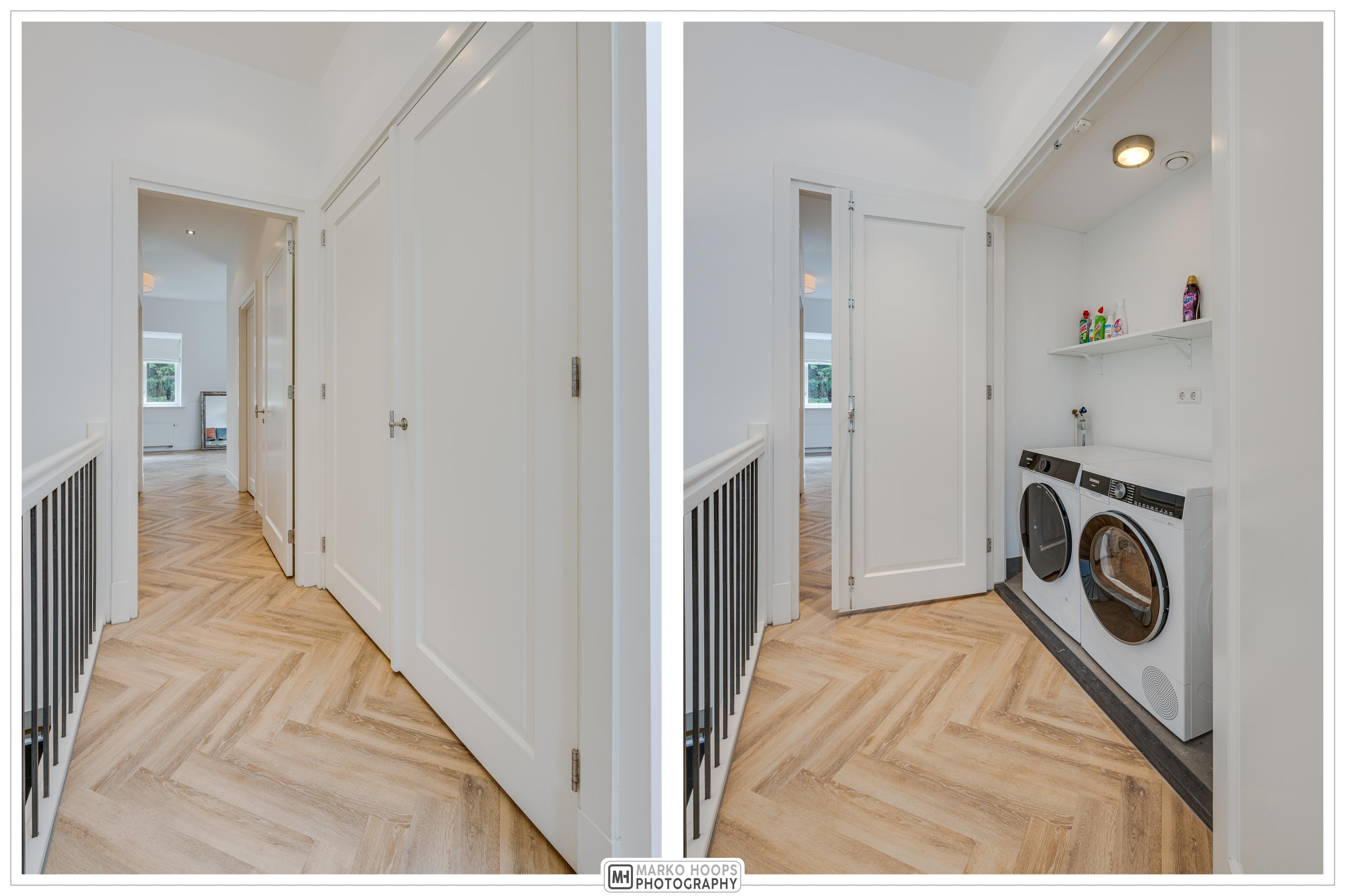De master bedroom is voorzien van airconditioning en heeft een eigen zithoek, kleedkamer en luxe uitgevoerde badkamer met vrijstaand ligbad, dubbele wastafel, toilet, grote inloopdouche met regen- en handdouche en design handdoek radiator. Beide badkamers en de gang zijn voorzien van vloerverwarming.