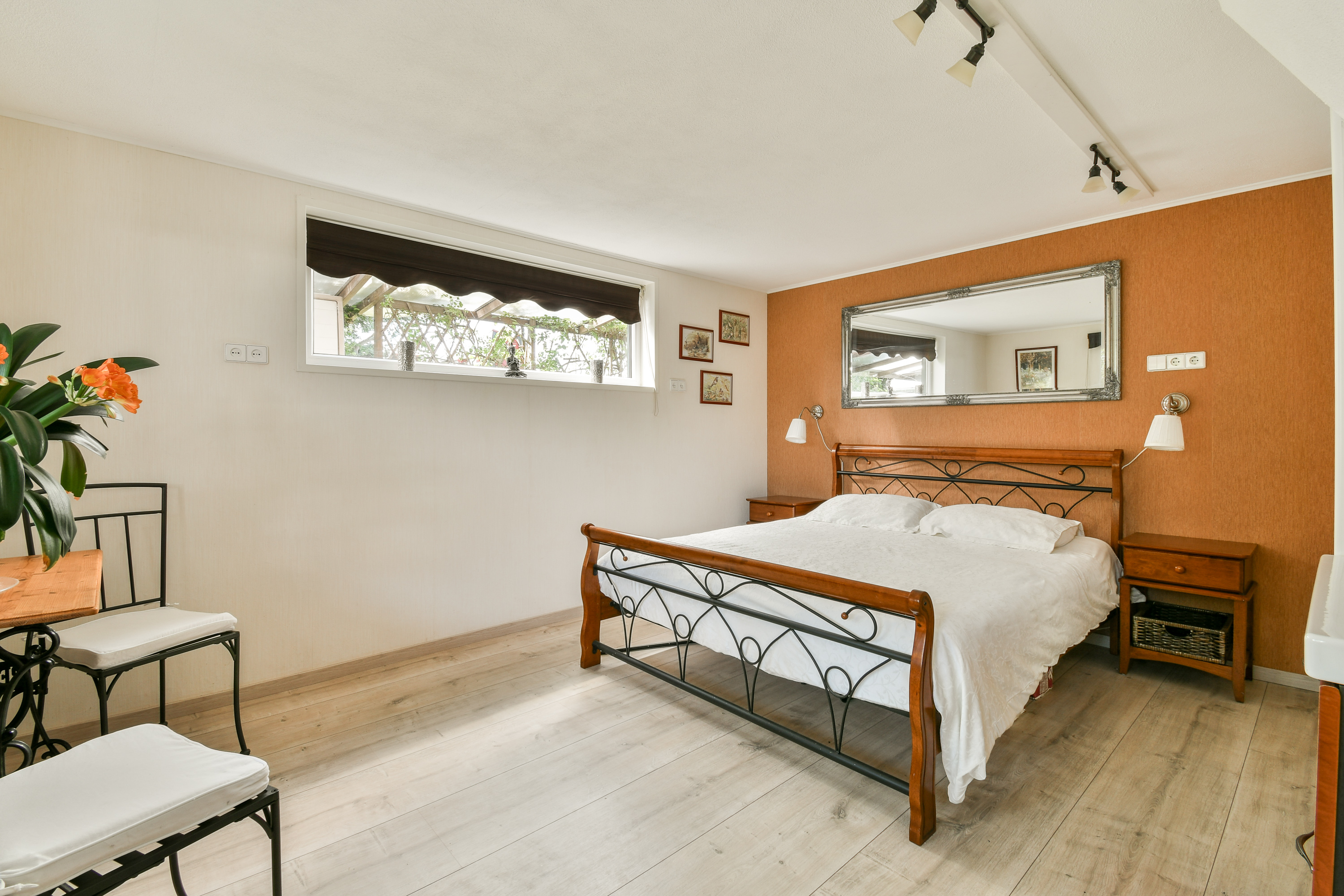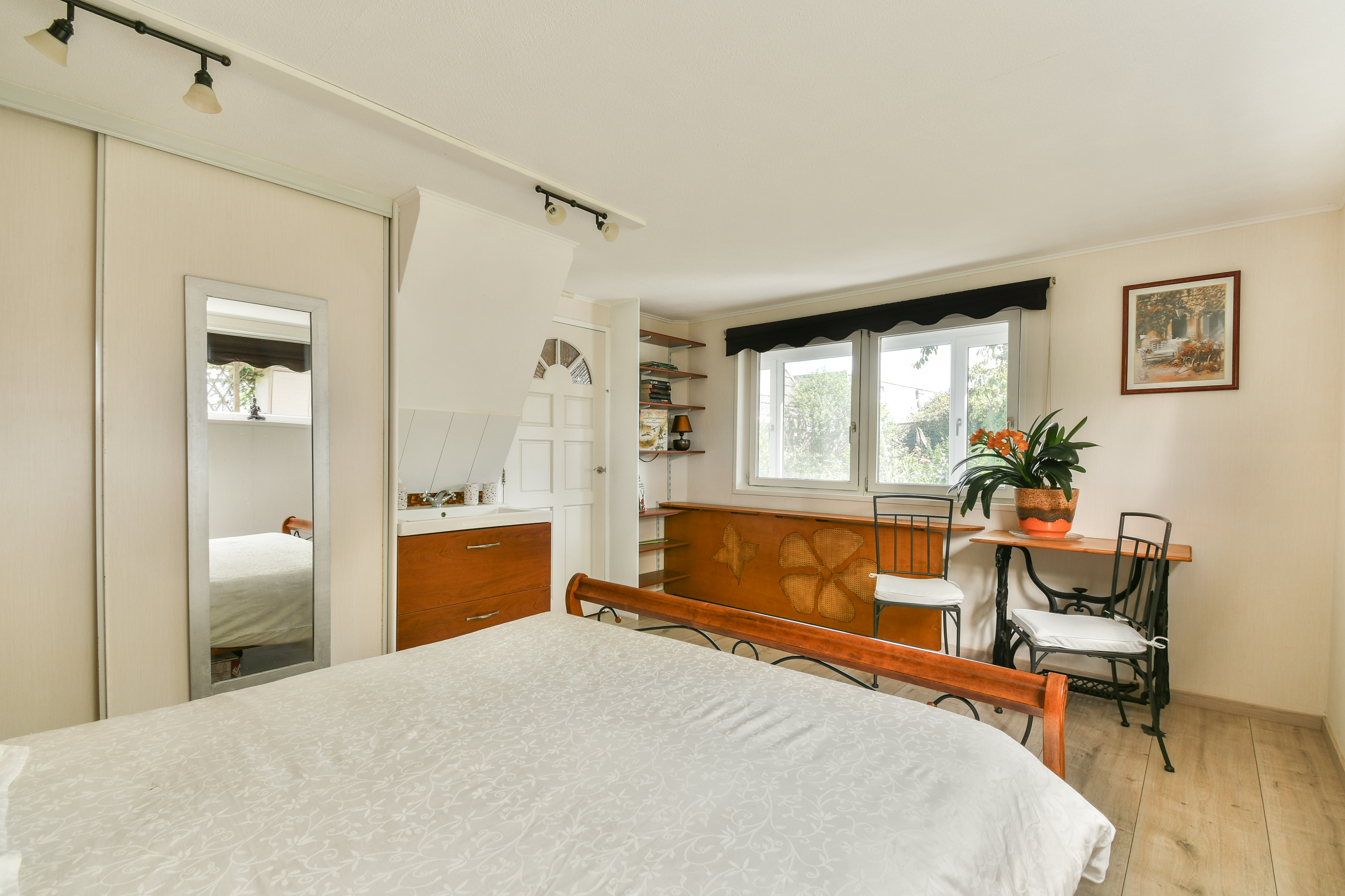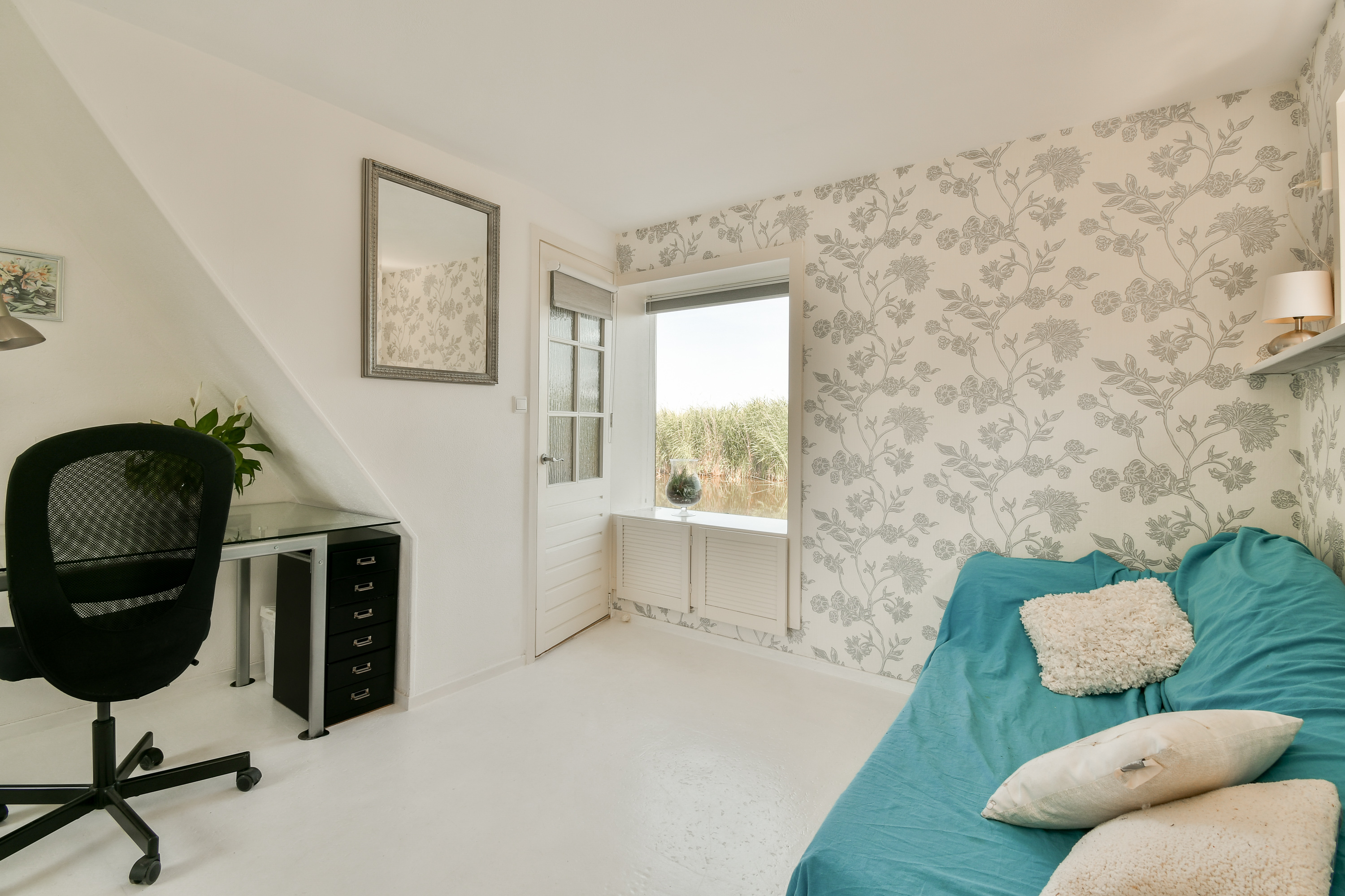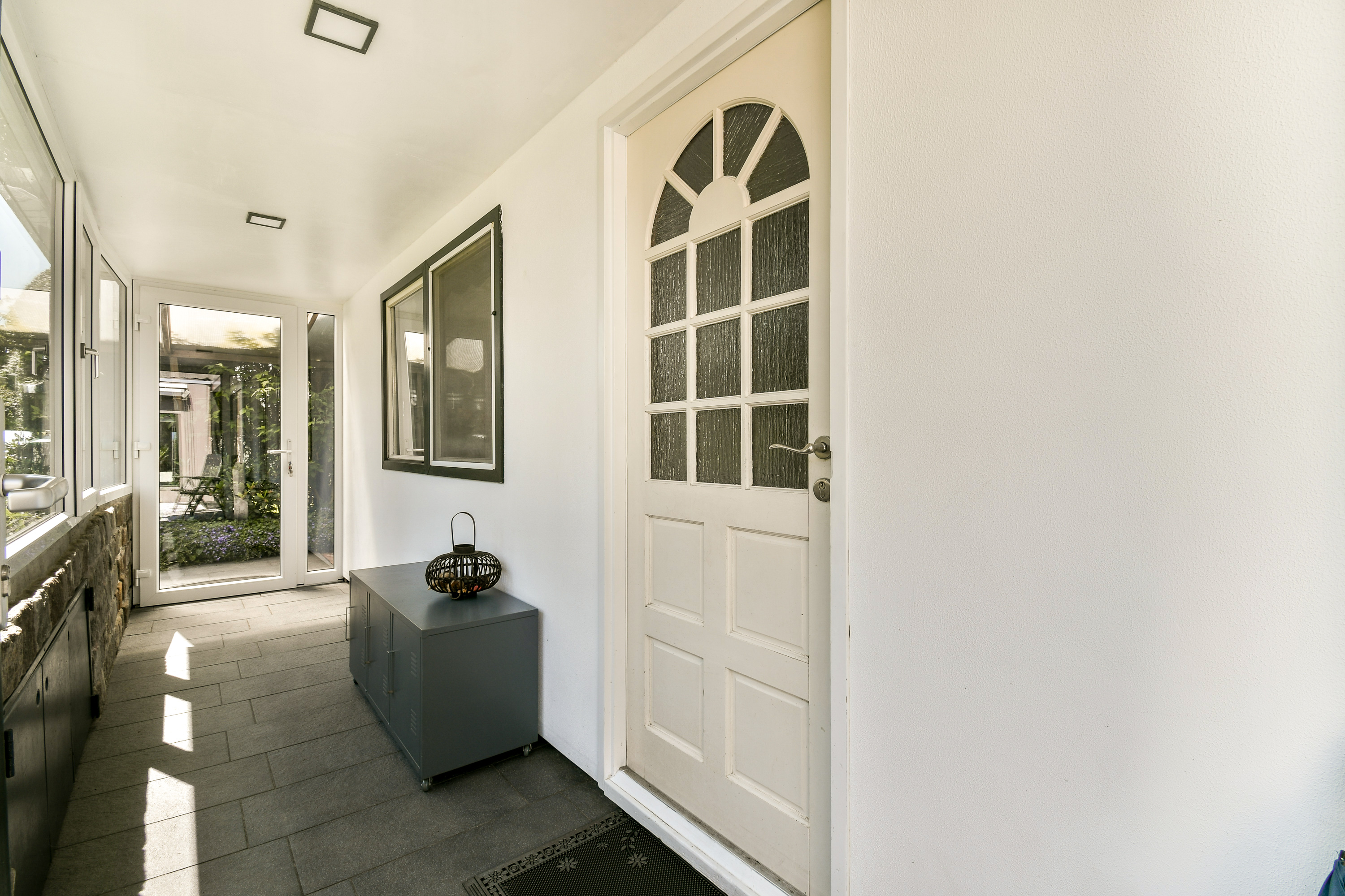 Begane grond: Binnenkomst in royale ‘lichte’ hal in serre stijl, entree, trapopgang, slaapkamer, wasruimte met toilet, badkamer, woonkeuken, vaste doorgang naar de woonark.