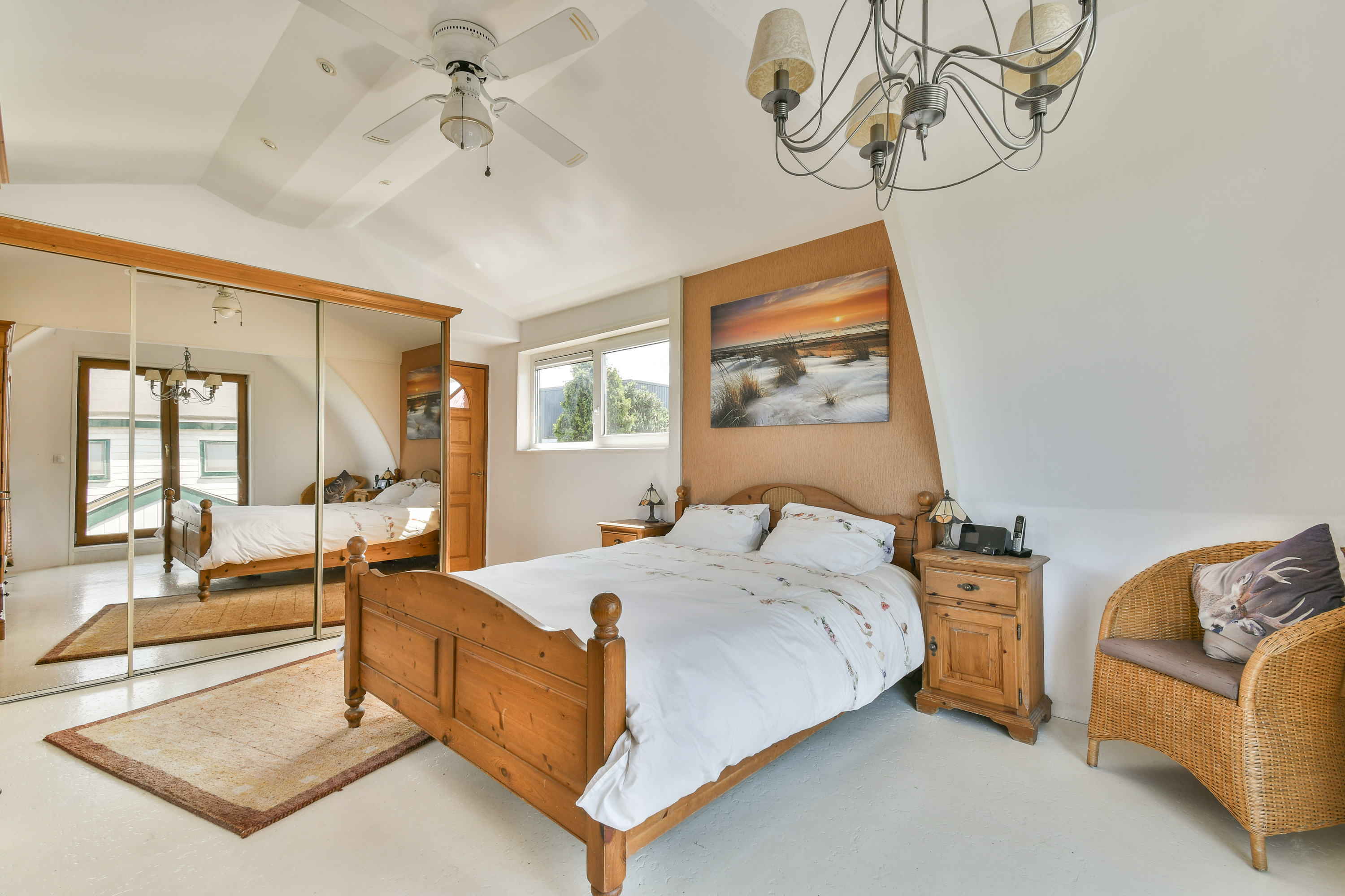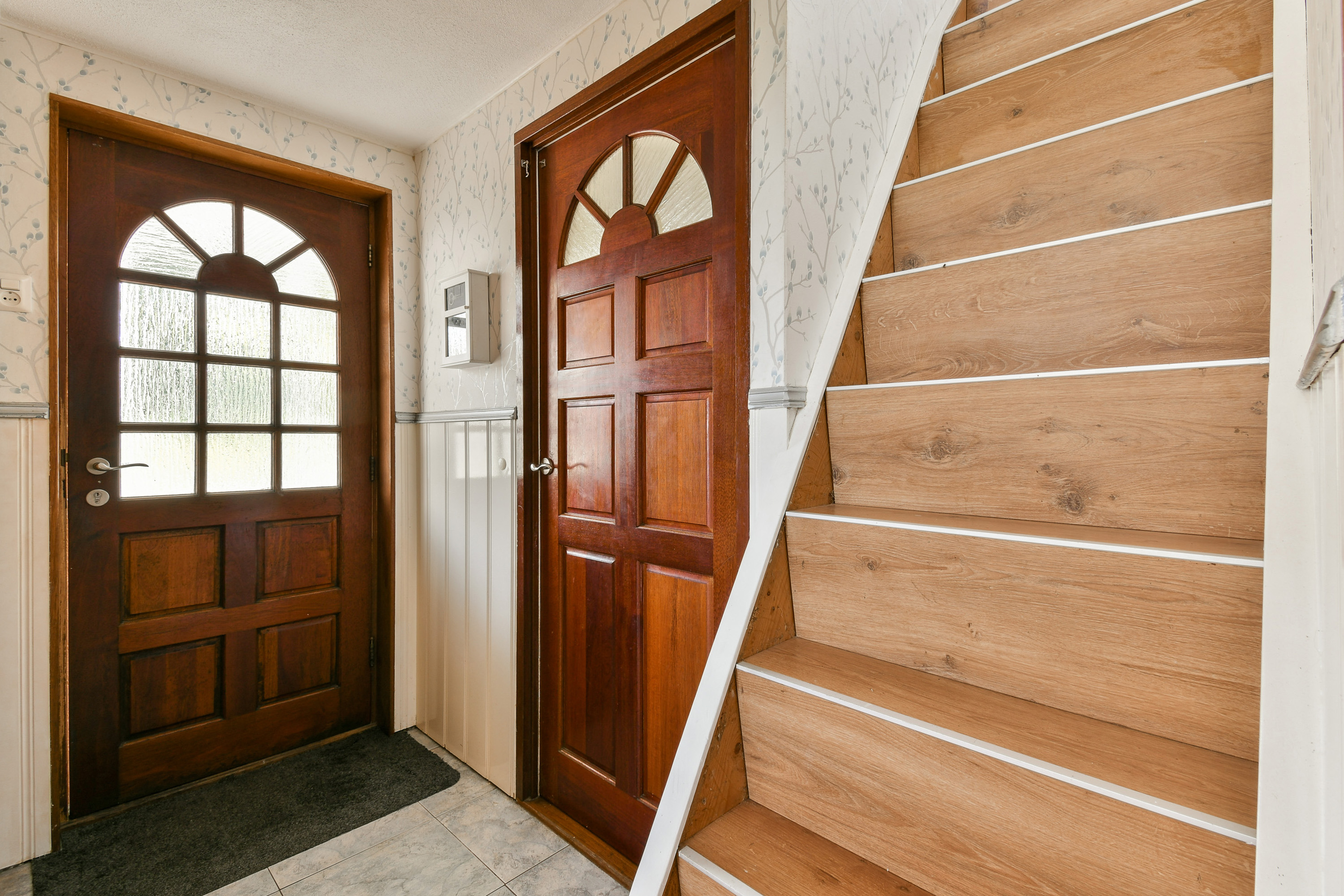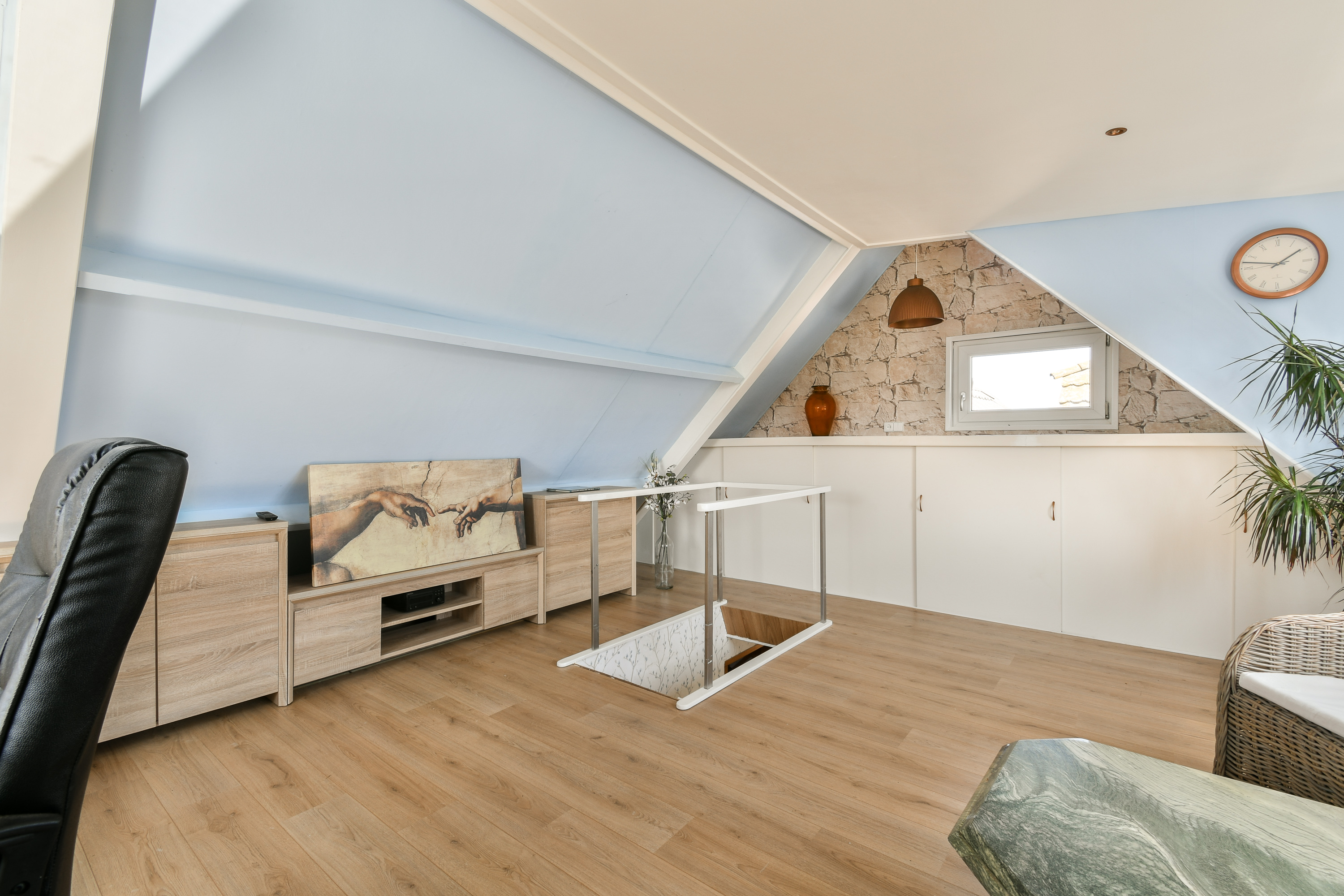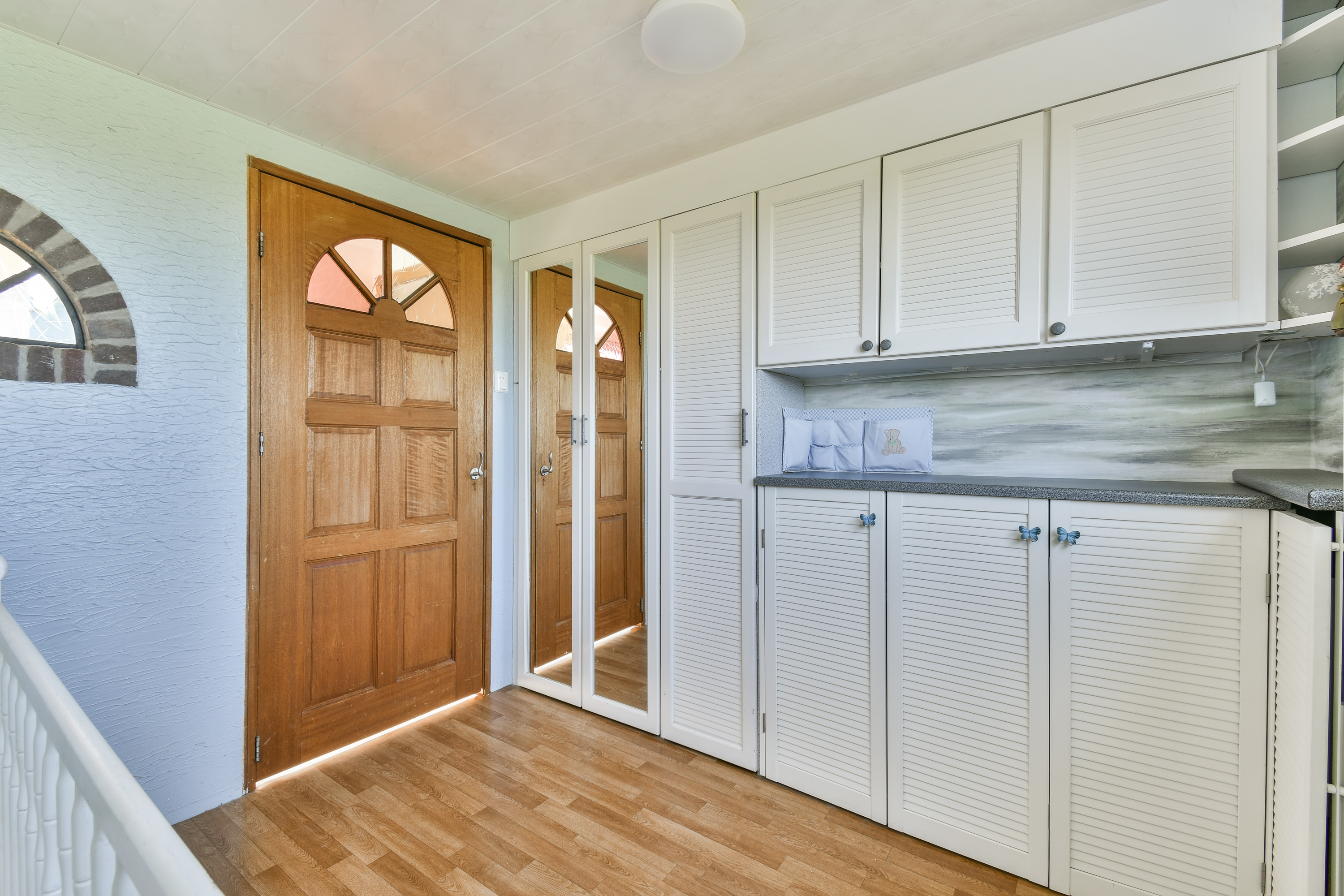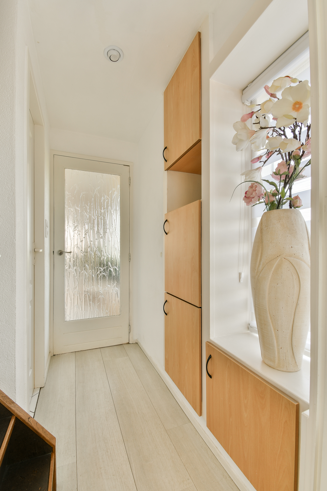 Begane grond: Binnenkomst in royale ‘lichte’ hal in serre stijl, entree, trapopgang, slaapkamer, wasruimte met toilet, badkamer, woonkeuken, vaste doorgang naar de woonark.