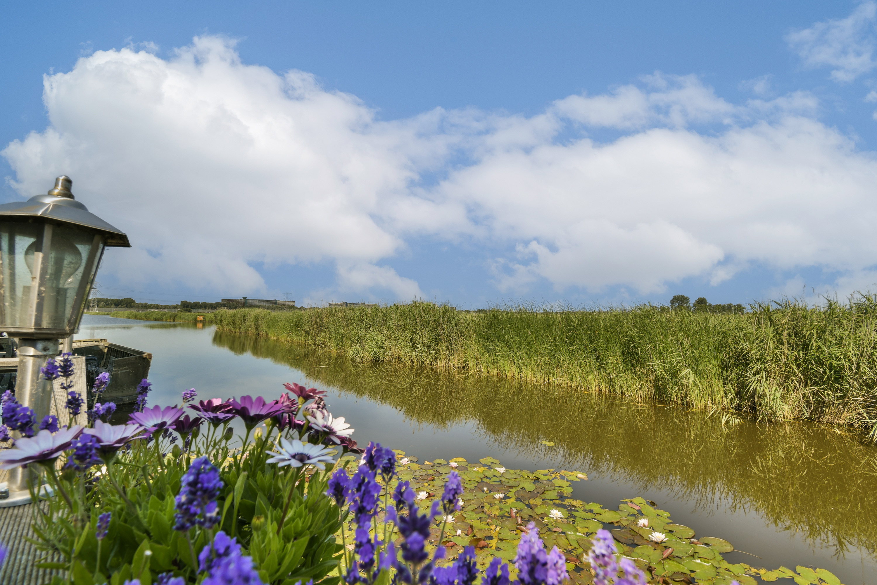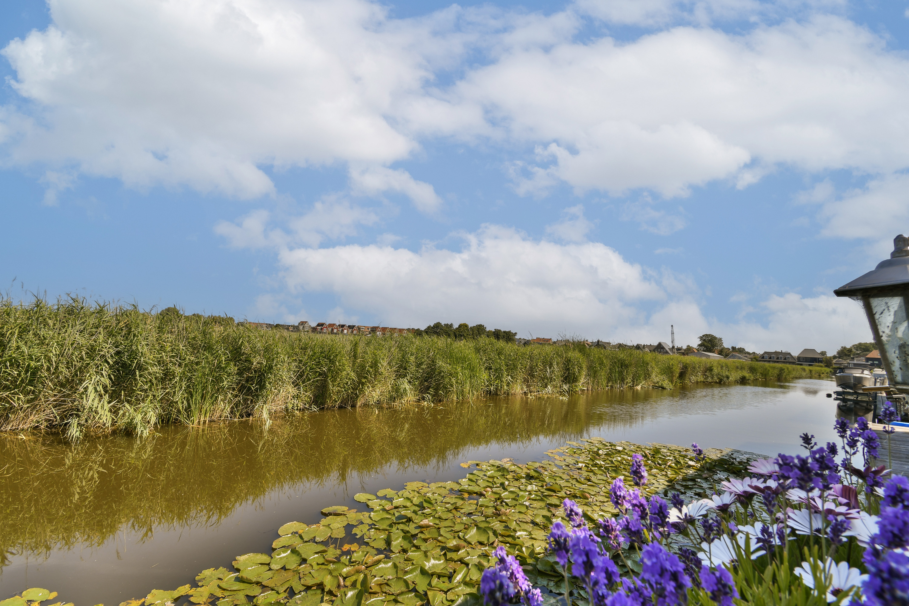 Begane grond: Heerlijk op het water (met bloeiende waterlelies) kijken vanuit je living, 2e slaapkamer, 2e badkamer, trapopgang.
