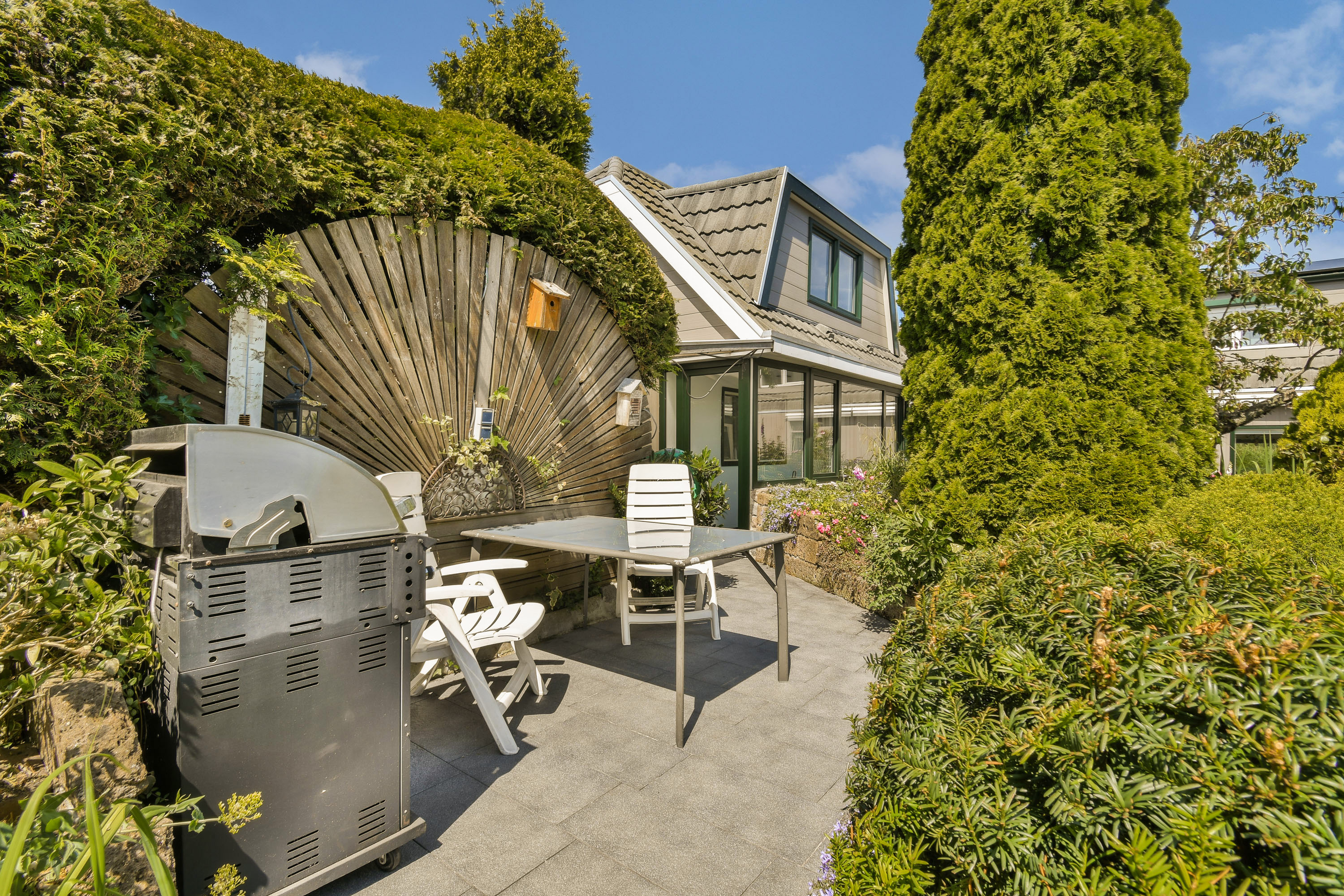 De volwassen tuin is ronduit prachtig. Een liefhebberstuin met een kleur- en geurexplosie aan soorten, die het ruime terras en gras omzomen. Een tuin die bijen, vlinders en vogels aantrekt!
