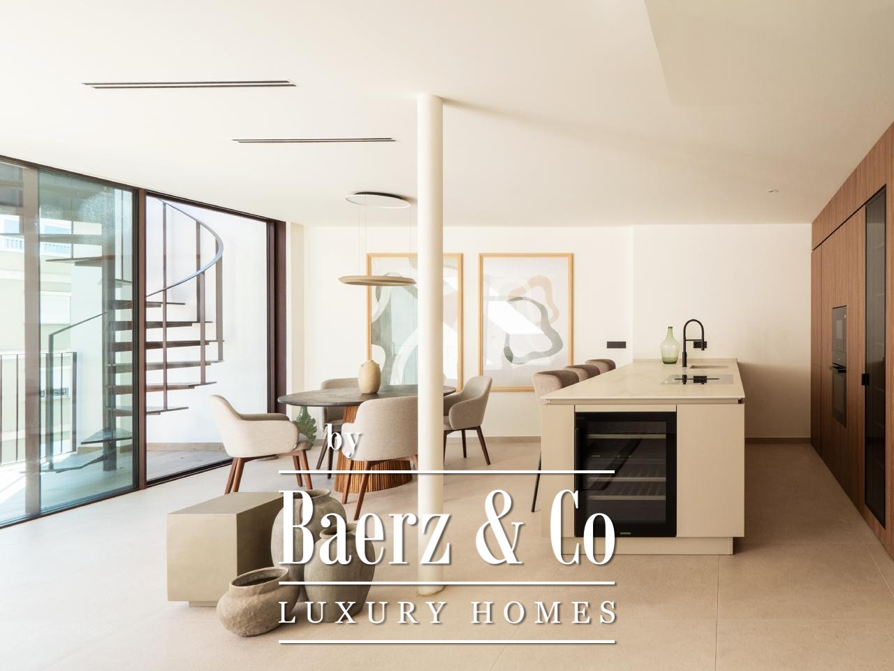 Penthouse Palma combineert licht en hedendaags design in het sfeervolle Santa Catalina. Deze nieuwbouwresidentie, gepland voor oplevering in 2025, ligt op een rustig hoekpunt in een van de meest gewilde wijken van de stad. Het penthouse omvat 234 m², drie slaapkamers en twee stijlvol ingetogen badkamers. De lichte woonruimte sluit naadloos aan op een ruim terras, waardoor binnen en buiten moeiteloos in elkaar overgaan. Een externe trap voert vanaf het hoofdverdiep naar het privé dakterras van circa 80 m², dat panoramische vergezichten biedt en een exclusief uitzicht op de zonovergoten horizon van Mallorca.