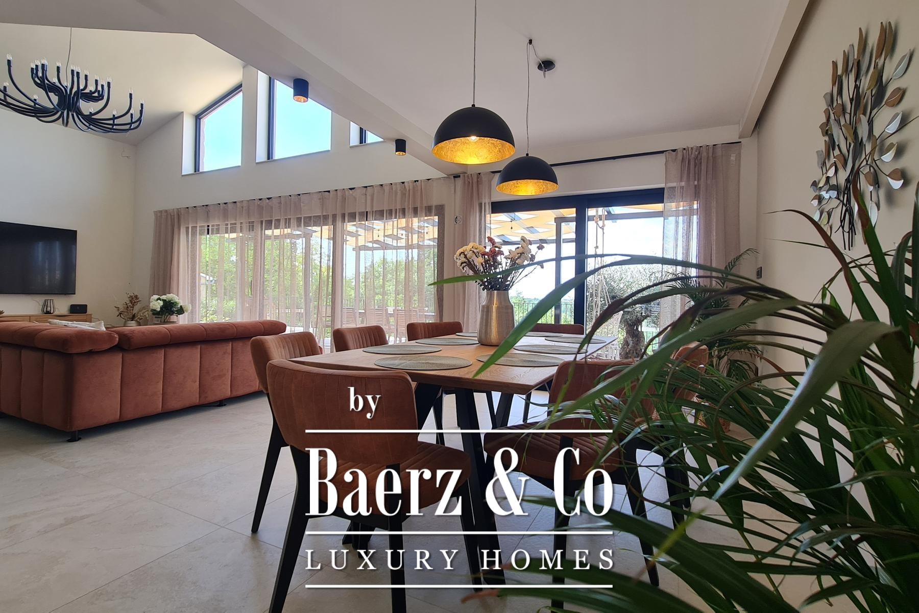 De villa, voltooid en ingericht in juli 2024, zet een nieuwe standaard op het gebied van modern bouwen. Het interieur is voorzien van maatwerk meubilair en subtiele traditionele accenten. Vloer-tot-plafond ramen verbinden de open woonkamer, eetkamer en keuken met een zonovergoten terras, in voortdurende relatie met het omliggende landschap.
