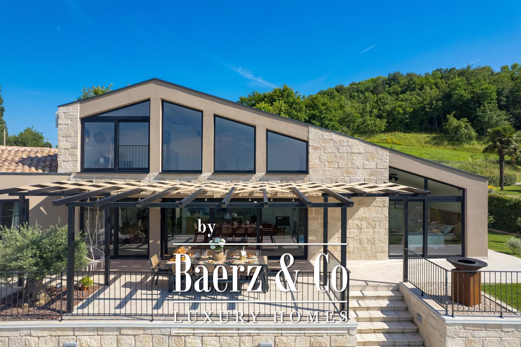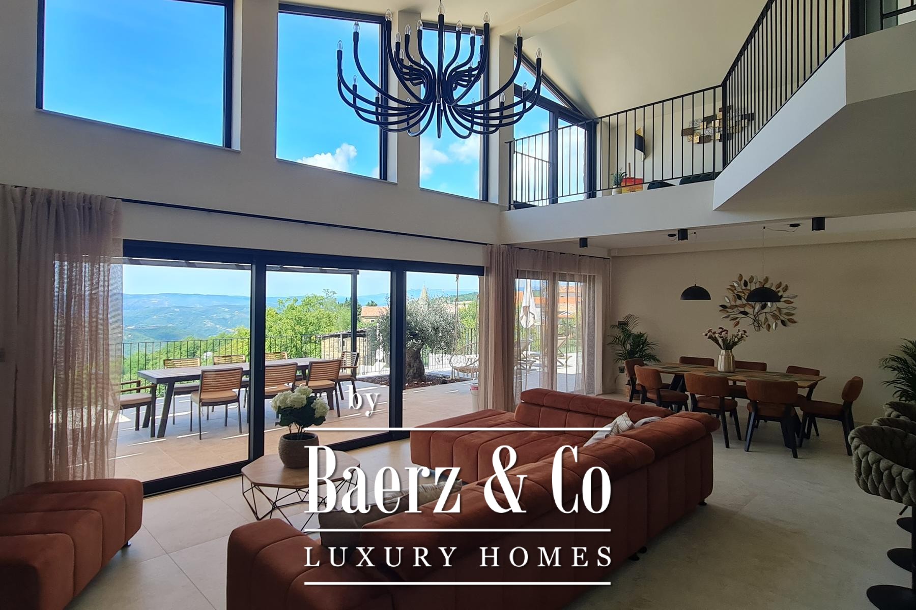 Luxe villa Pazin Okolica biedt 230 m² eigentijdse leefruimte, gelegen op een omheind perceel van 1.420 m² te midden van de zacht glooiende heuvels van Istrië. Het eigendom trakteert op weidse panoramische vergezichten, van het weelderige landschap tot aan Slovenië en Italië, en biedt het zeldzame gevoel van vrijheid en beslotenheid dat kenmerkend is voor de regio.
