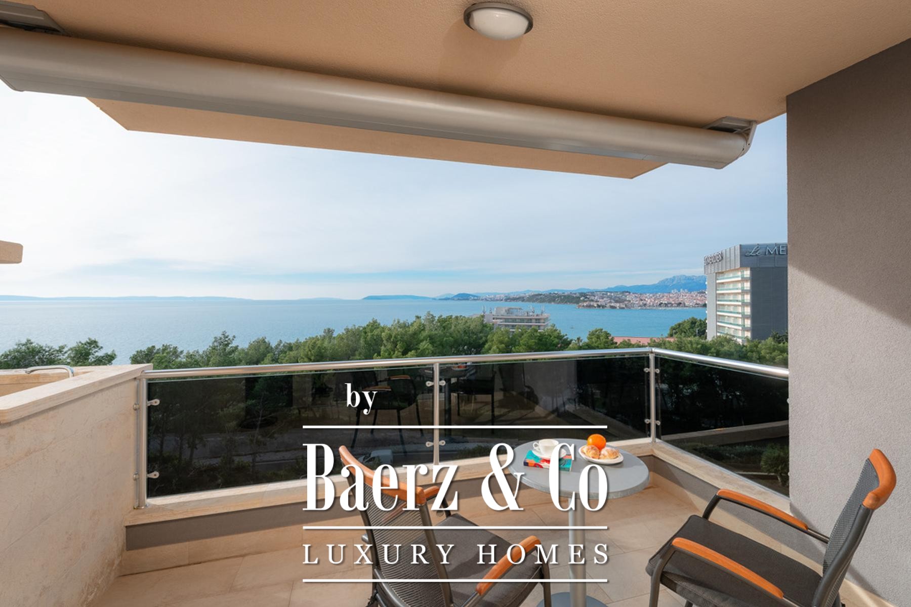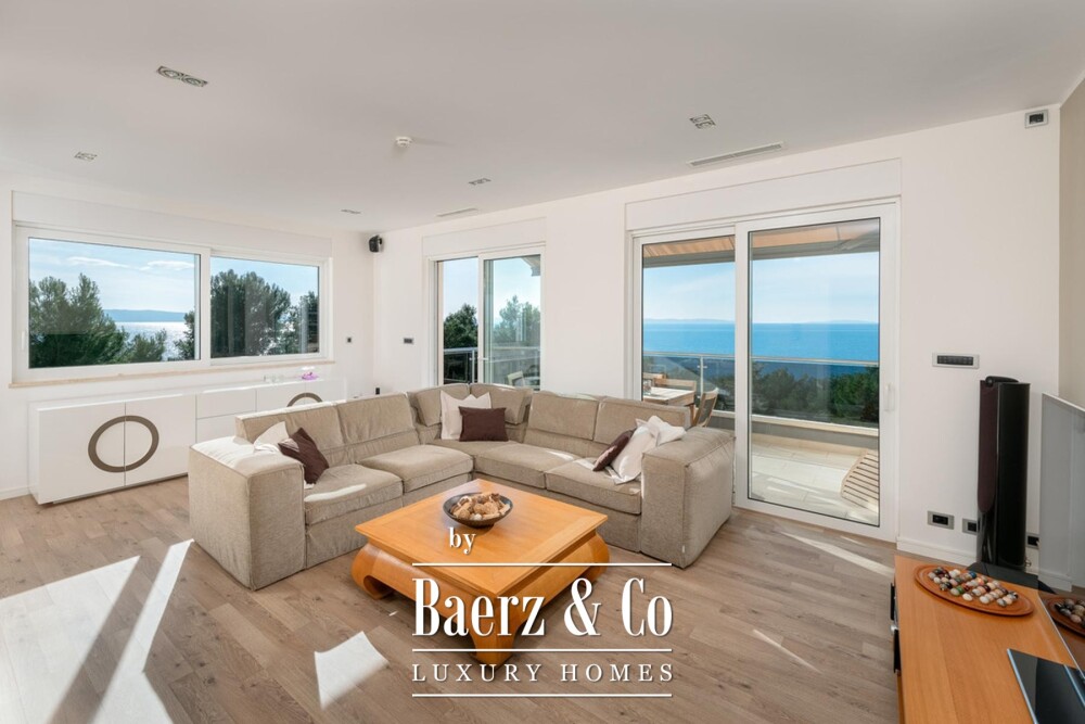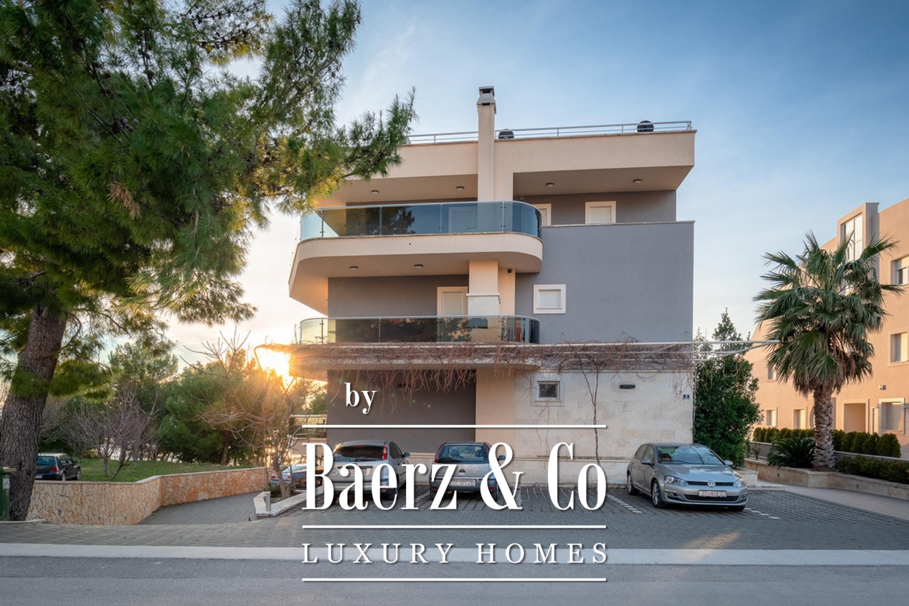 Drie terrassen met een gezamenlijk oppervlak van 18,38 m² bieden panoramische vergezichten over de Adriatische Zee, beschermd en blijvend. De leefruimtes worden overspoeld door daglicht, geaccentueerd door grote raampartijen en optimale oriëntatie. Een aparte werkruimte biedt plaats aan wasvoorzieningen en een afzonderlijke garderobe zorgt voor extra organisatie. Door het gehele appartement is een geavanceerd domoticasysteem aanwezig dat vloerverwarming, airconditioning, luchtverversing, brand- en rookmelders, een centraal stofzuigsysteem, zonnepanelen voor warm water, elektrische rolluiken en zonwering, en hoogwaardige apparatuur integreert. Op het terras nodigt een traditionele gemetselde open haard uit om buiten in de Dalmatische sfeer te vertoeven.