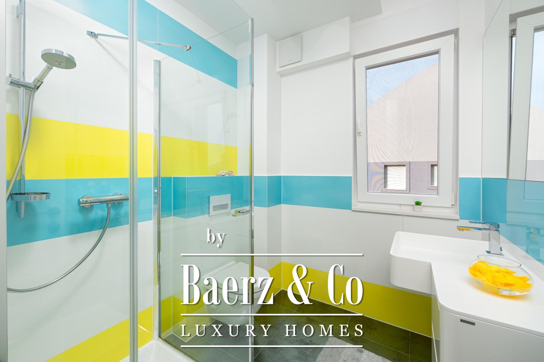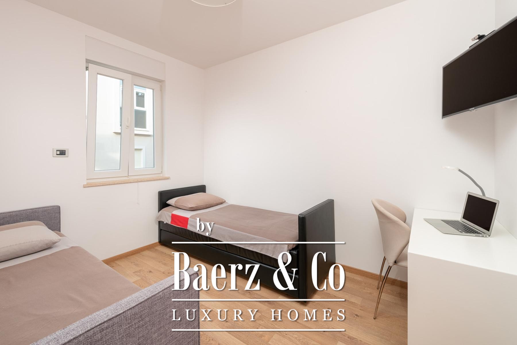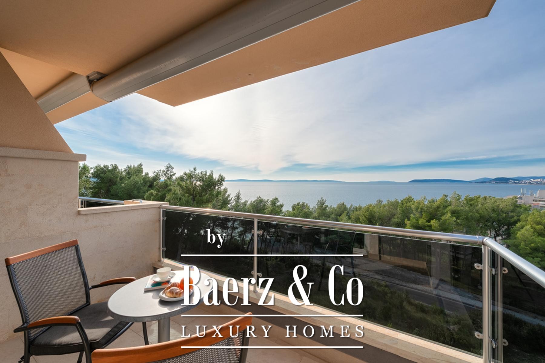 Drie terrassen met een gezamenlijk oppervlak van 18,38 m² bieden panoramische vergezichten over de Adriatische Zee, beschermd en blijvend. De leefruimtes worden overspoeld door daglicht, geaccentueerd door grote raampartijen en optimale oriëntatie. Een aparte werkruimte biedt plaats aan wasvoorzieningen en een afzonderlijke garderobe zorgt voor extra organisatie. Door het gehele appartement is een geavanceerd domoticasysteem aanwezig dat vloerverwarming, airconditioning, luchtverversing, brand- en rookmelders, een centraal stofzuigsysteem, zonnepanelen voor warm water, elektrische rolluiken en zonwering, en hoogwaardige apparatuur integreert. Op het terras nodigt een traditionele gemetselde open haard uit om buiten in de Dalmatische sfeer te vertoeven.