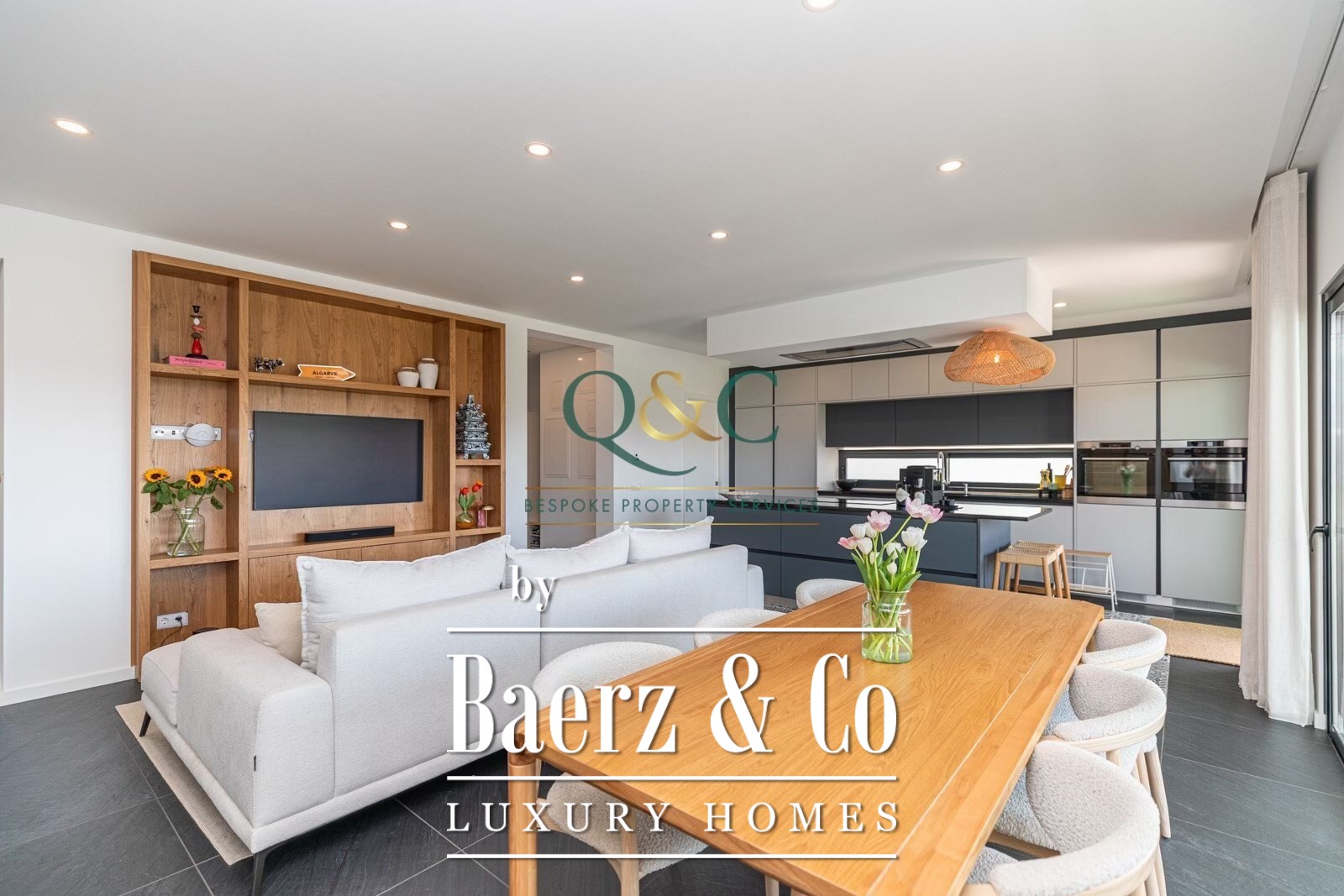 Op de bovenverdieping zijn drie extra slaapkamers, waaronder een met en-suite badkamer, aangevuld met een tweede badkamer. Een trap leidt naar het ruime dakterras, waar ontspannen onder de open hemel centraal staat. Het royale souterrain biedt een vijfde slaapkamer, een badkamer en een ruime family playroom, ideaal als toevluchtsoord of voor recreatie.