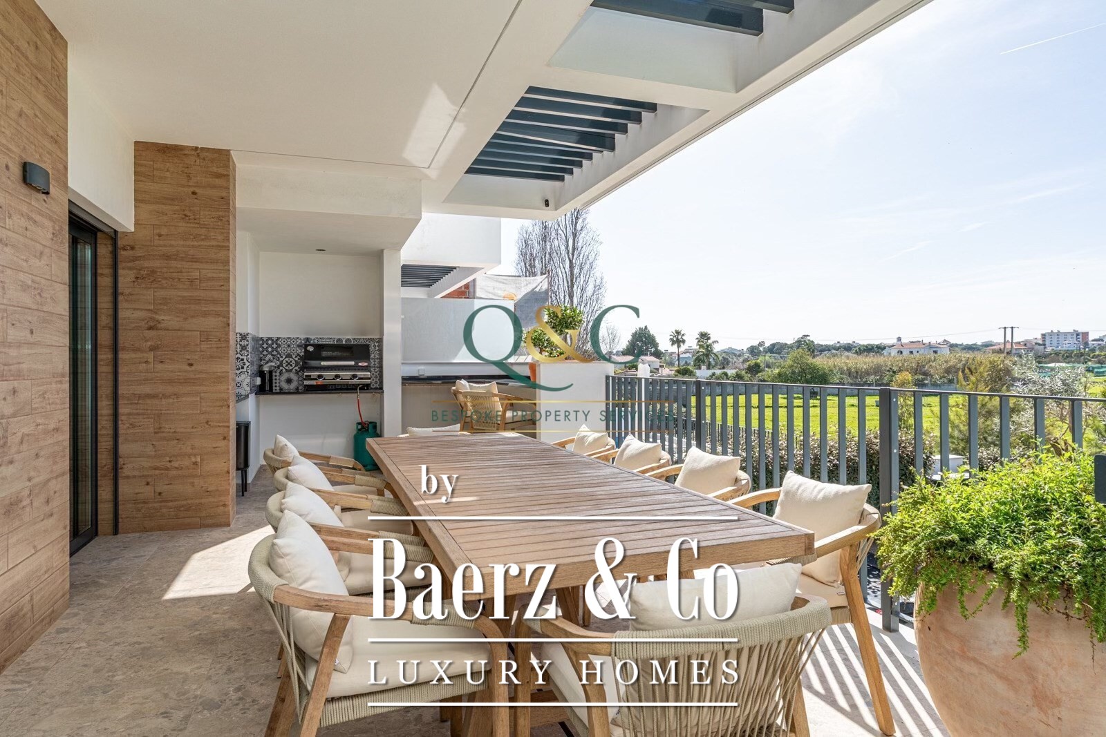 Buitenleven wordt naar een hoger niveau getild dankzij een zoutwaterzwembad van 7 x 3 m, een solar afdekking, warmtepomp en barbecuegedeelte – alles gesitueerd op een terras met elektrische zonwering. Vloerverwarming, airconditioning, zonnepanelen en centraal bedienbare elektrische rolluiken garanderen comfort gedurende het hele jaar. De villa is gebouwd in 2025 op een perceel van 333 m² en ligt op loopafstand van Fonte Santa, internationale scholen, prestigieuze golfbanen en de stranden van Trafal, Vilamoura en Vale do Lobo. De besloten tuin, dubbele beglazing en beveiligde parkeergelegenheid verzekeren een verfijnde en zorgeloze levensstijl. Daardoor is deze luxe villa te koop in Quarteira een discreet en bijzonder thuis.