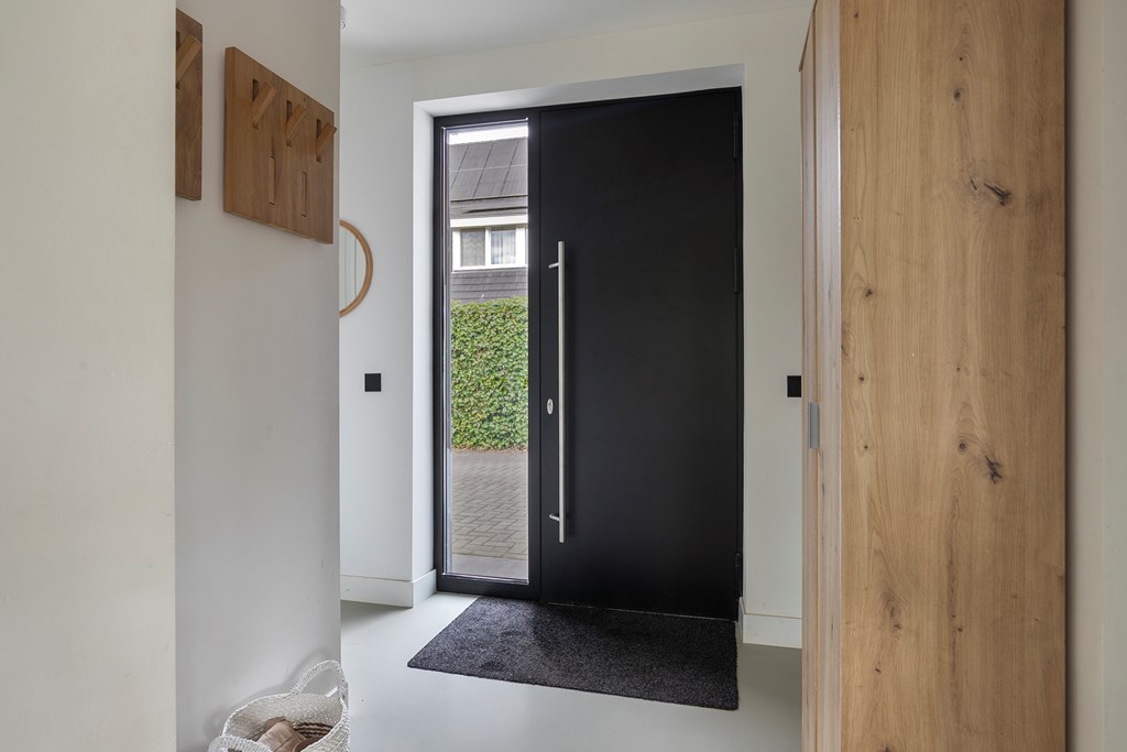 Via de royale oprit betreedt u het perceel. Hier is voldoende parkeergelegenheid voor meerdere auto’s, mede dankzij de vrijstaande garage en carport. Eenmaal binnen komt u in de ruime hal, een prettig welkom met ruimte voor een garderobe of een stijlvol opbergmeubel. Vanuit deze hal heeft u toegang tot de eerste verdieping, de toiletruimte en de leefruimtes op de begane grond.
