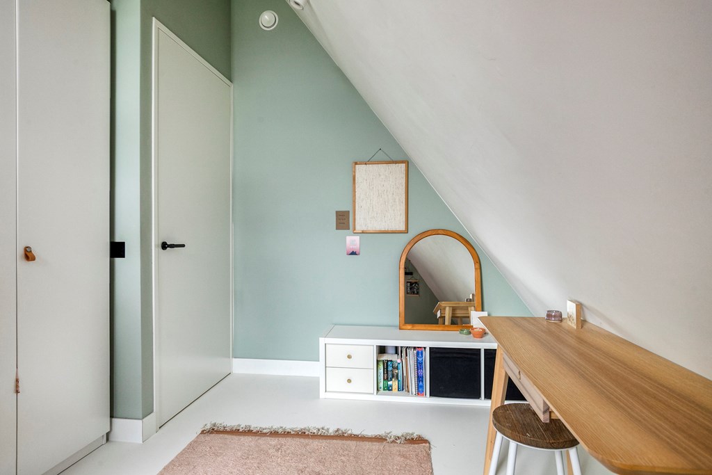 Elke kamer op deze verdieping is slim ingedeeld en biedt voldoende ruimte voor een bed, een kast of een werkplek. Grote ramen zorgen voor een prettige lichtinval, terwijl de karakteristieke schuine wanden extra sfeer geven. De kamers zijn ideaal als slaapvertrek, maar ook inzetbaar als werk-, studeer- of hobbykamer.