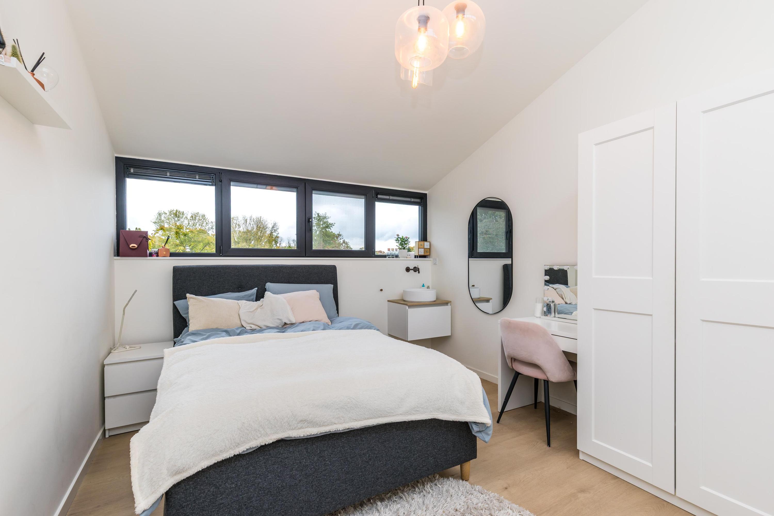 Charmante tuingerichte zitkamer met knusse open haard en leuke doorkijkjes naar zowel de voortuin als de achtertuin met beekje. Vanuit de woonkeuken is er toegang tot een ruimte tv-kamer aan de voorzijde. Eveneens vanuit de keuken is er een aparte gang met toilet voorzien van fonteintje en toegang tot de master bedroom met walk-in closet en eigen luxe badkamer met uitzicht op de tuin en voorzien van een vrijstaand ligbad, inloopdouche en wastafelmeubel. Voorts is er een ruime waskamer/mud room met veel bergruimte waar ook bijvoorbeeld een fitnesskamer van de maken is. In deze ruimte is de opstelling van de installaties, waaronder de warmtepomp, mooi weggewerkt.