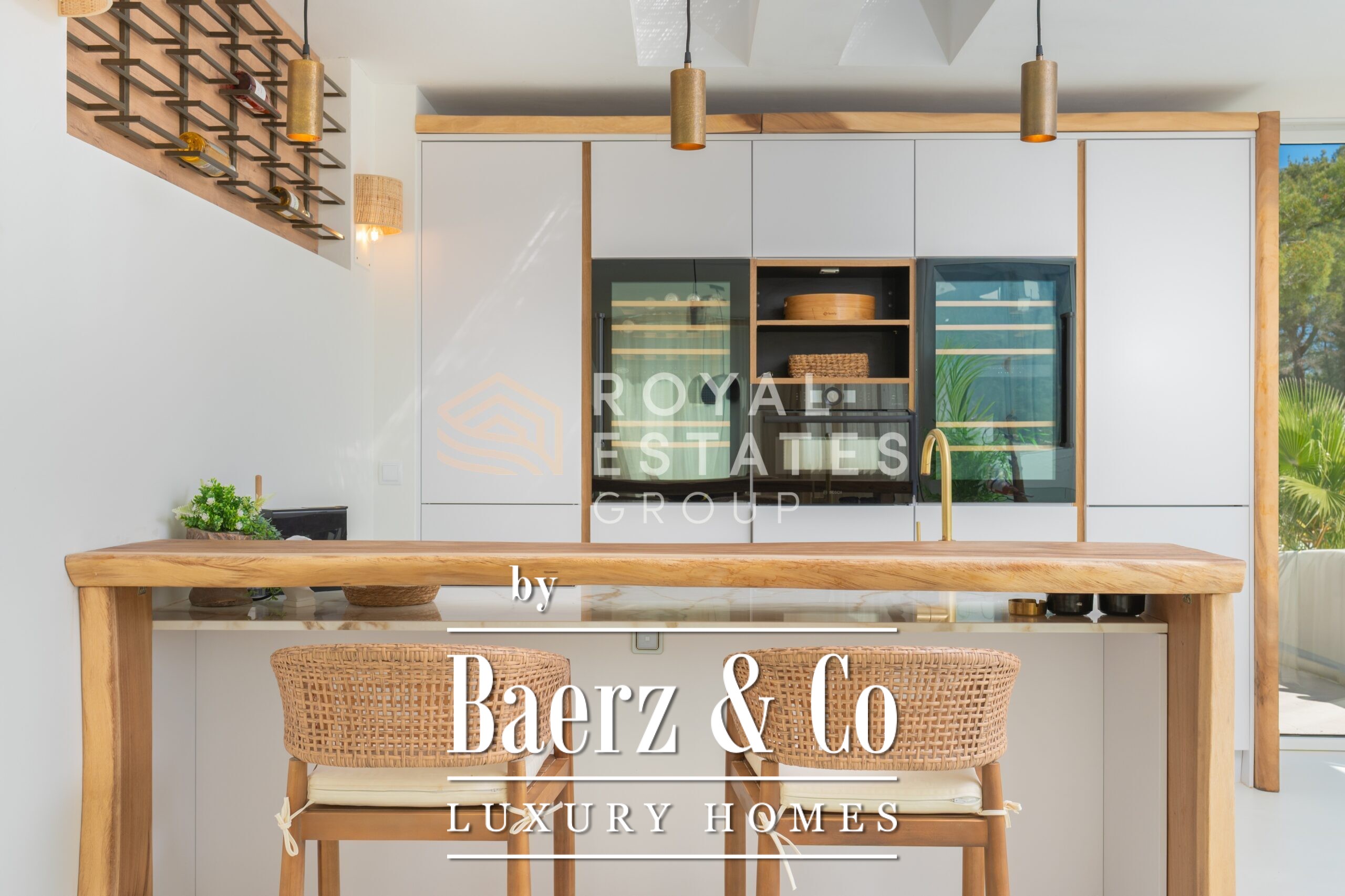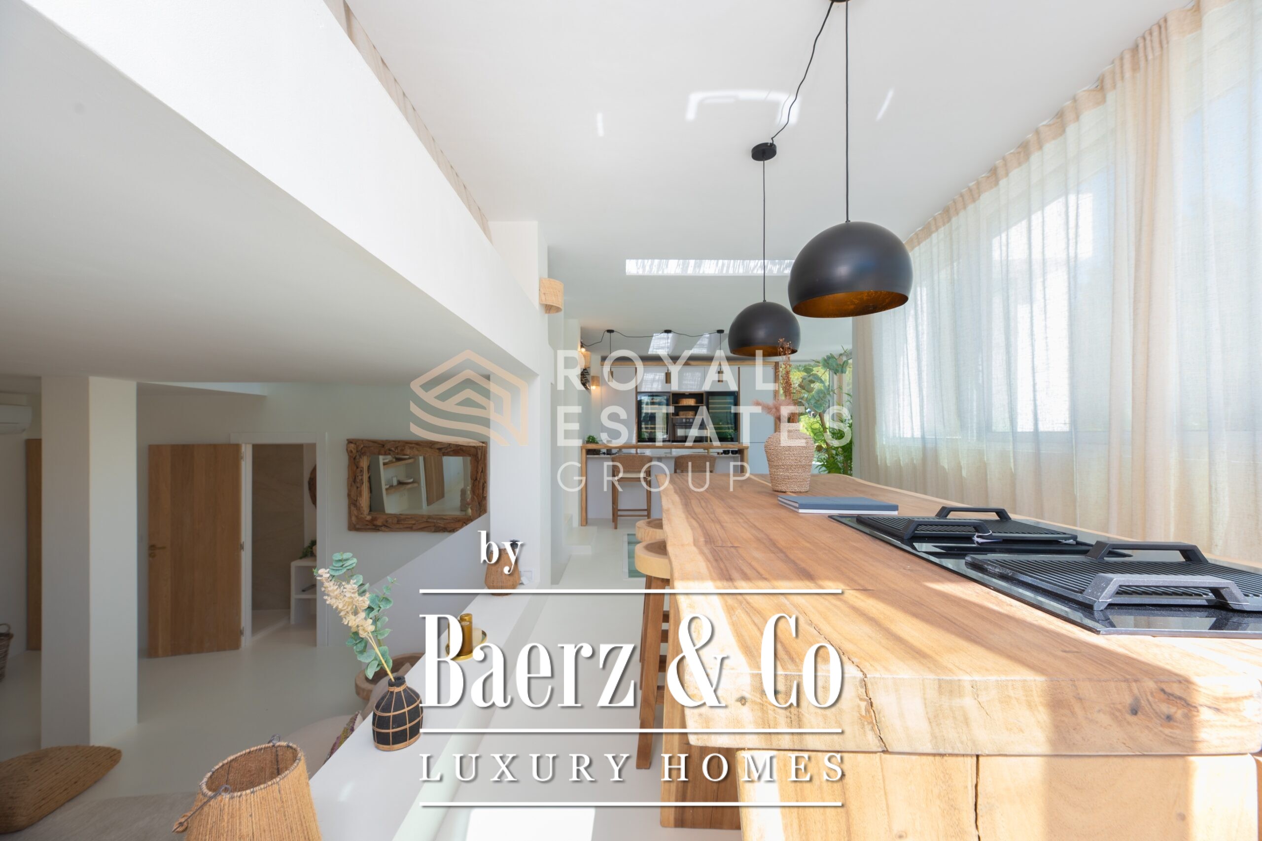 De hoofdvilla beschikt over vier slaapkamers en drie badkamers, waardoor er een zorgvuldige balans is tussen gezinsleven en gastverblijf. Grote raampartijen vullen het interieur met licht en creëren een vloeiende overgang naar buiten. Vloerverwarming en airconditioning zorgen het hele jaar door voor comfort. Exclusieve voorzieningen als een inpandige gym, sauna, jacuzzi en een wijnkelder van 20 m² maken het verblijf compleet. Technische extra’s omvatten zonnepanelen, een batterijsysteem van 32 kW en een watertank met natuurlijke gedeelde bron.