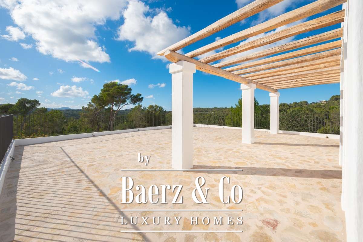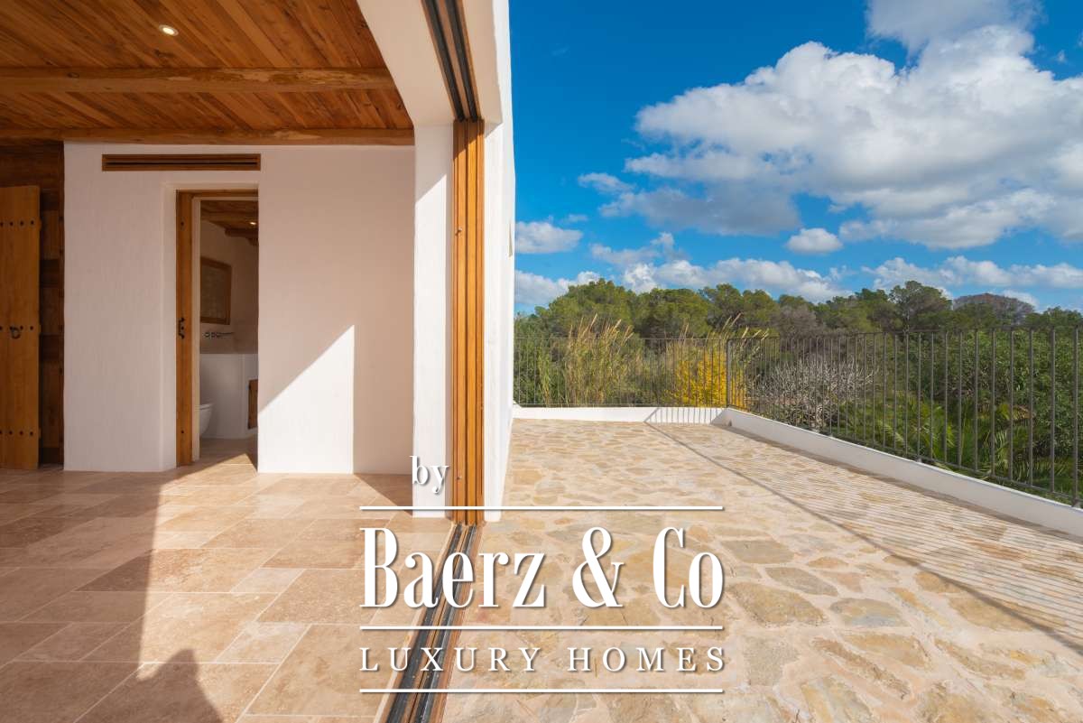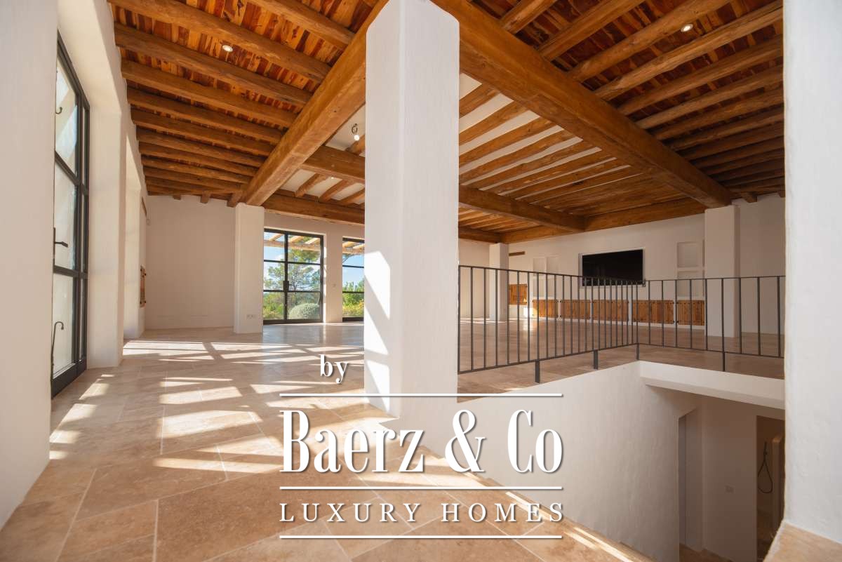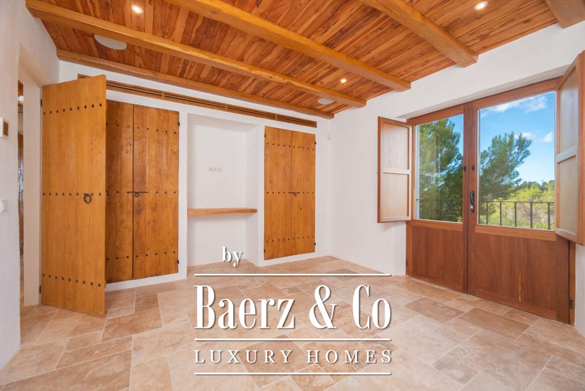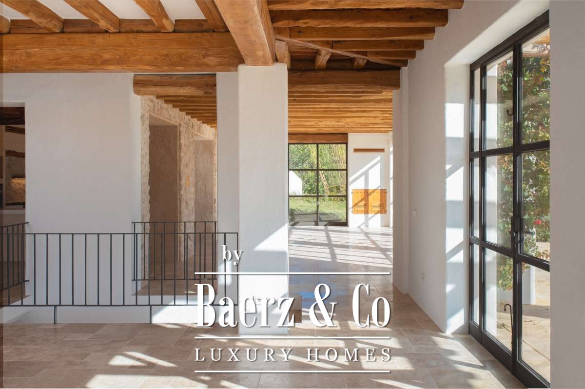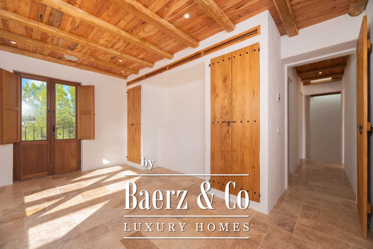 De omgevingTe midden van het betoverende landschap van centraal Ibiza ligt deze bijzondere finca, verscholen tussen de uitgestrekte natuur, bosrijke heuvels en vruchtbare landerijen. Het perceel van bijna twee hectare biedt een ongekende privacy en een gevoel van pure vrijheid, terwijl het uitzicht zich uitstrekt over het glooiende binnenland en de mediterrane vegetatie. De ligging tussen Santa Gertrudis en Sant Rafel maakt deze plek ideaal voor wie de authentieke rust van het eiland zoekt, maar toch binnen enkele minuten verbonden wil zijn met levendige dorpjes, internationale scholen en de mooiste stranden. Een harmonieuze balans tussen gemak en totale sereniteit.De villaDeze onlangs prachtig gerenoveerde finca is een toonbeeld van elegantie en raffinement. Het historische karakter is zorgvuldig behouden, terwijl moderne elementen en hoogwaardige materialen het wooncomfort naar een eigentijds niveau tillen. Met een totaal woonoppervlak van 267 m² biedt het huis royale ruimtes die warm aanvoelen en tegelijkertijd een luxe uitstraling hebben.Bij binnenkomst word je welkom geheten door lichte leefruimtes met natuurlijke texturen, zichtbare stenen muren en zachte kleuren die perfect aansluiten bij de koloniale finca-stijl. De keuken en woonkamers vloeien harmonieus in elkaar over, ideaal voor lange diners of ontspannen avonden met vrienden en familie. De slaapkamers, ruim, elegant en rustgevend, bieden elk hun eigen gevoel van privacy. De master bedroom op de bovenverdieping is een waar hoogtepunt, met weids uitzicht dat ’s avonds wordt versierd door de twinkelende lichtjes van Dalt Vila, een scène die nooit verveelt.De buitenruimtesDe buitenruimte is ontworpen om in alle seizoenen intens te kunnen genieten van het mediterrane leven. Een strak privézwembad vormt het middelpunt van de zonnige terrassen, omgeven door een fraai aangelegde tuin die naadloos overloopt in de natuurlijke omgeving. Schaduwrijke plekken onder volwassen bomen, ruime loungezones en een panoramisch uitzicht maken dit tot een paradijs voor levensgenieters. Het royale perceel van 19.187 m² zorgt voor een gevoel van rust, ruimte en volledige afzondering.Deze finca is niet zomaar een woning; het is een unieke samensmelting van historie, luxe en natuur. Een zeldzame kans voor wie op zoek is naar een exclusieve plek die de ziel van Ibiza ademt. Beleef het zelf, een bezichtiging zal je ongetwijfeld overtuigen.