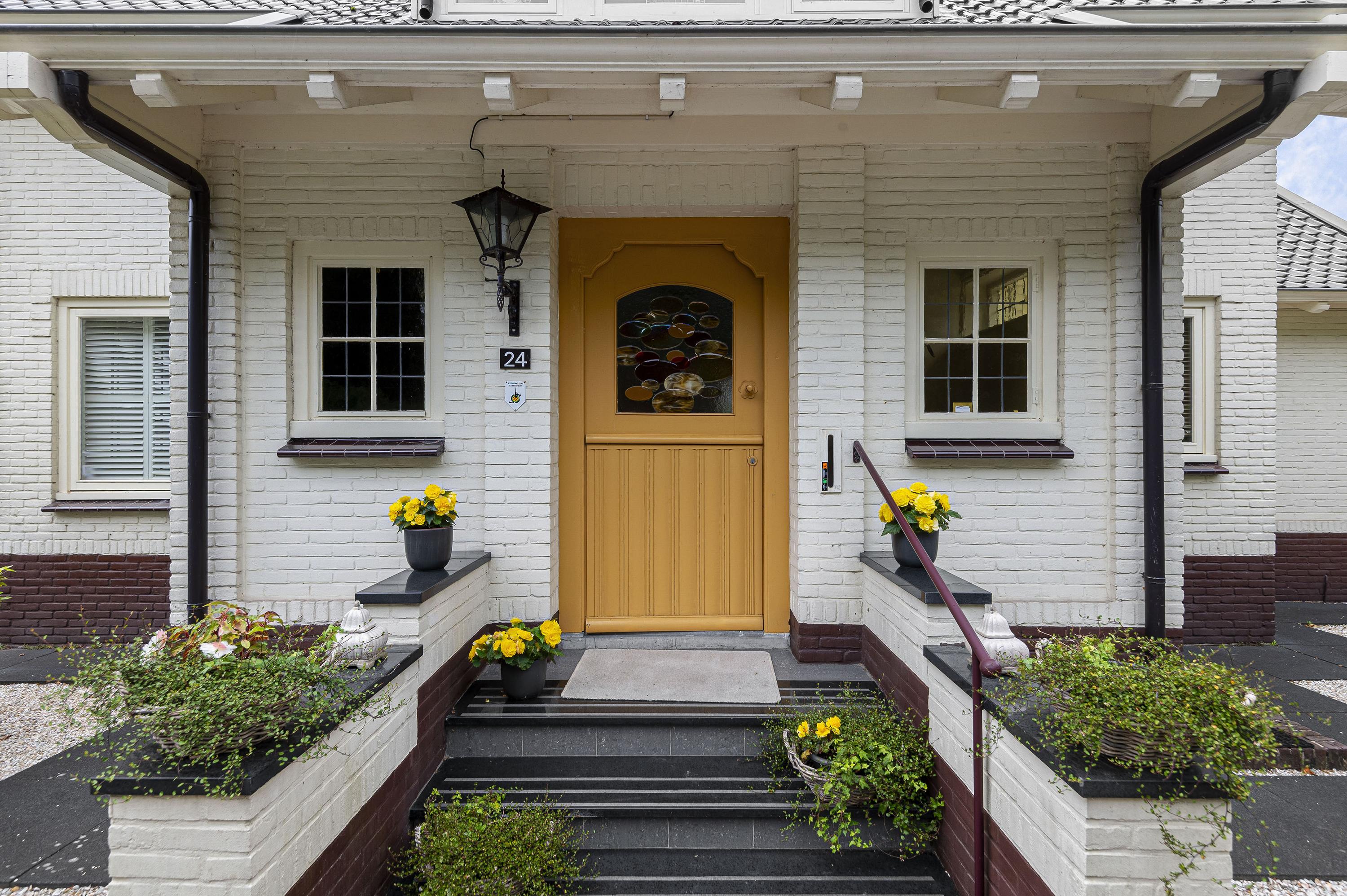 Entree in zeer ruime hal, sfeervolle glas in lood ramen, toilet en verdiepte garderobe. De woonkamer is opgesteld in L-vorm, heeft veel lichtinval, sfeervolle gashaard en is voorzien van een prachtige houten parketvloer. De serre en tweede woonkamer zijn later aangebouwd waardoor er veel extra ruimte is gecreëerd welke meerdere mogelijkheden geven. De serre en tweede woonkamer zijn voorzien van een nette tegelvloer met vloerverwarming. De keuken is gelegen aan de voorzijde van de woning welke tevens toegang biedt tot de ruime bijkeuken.
