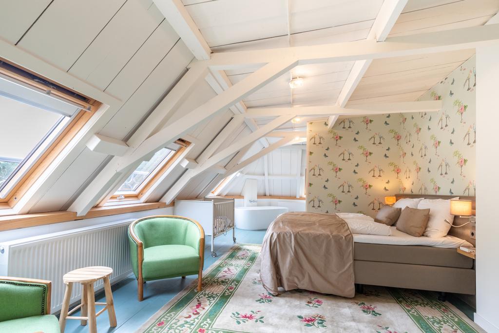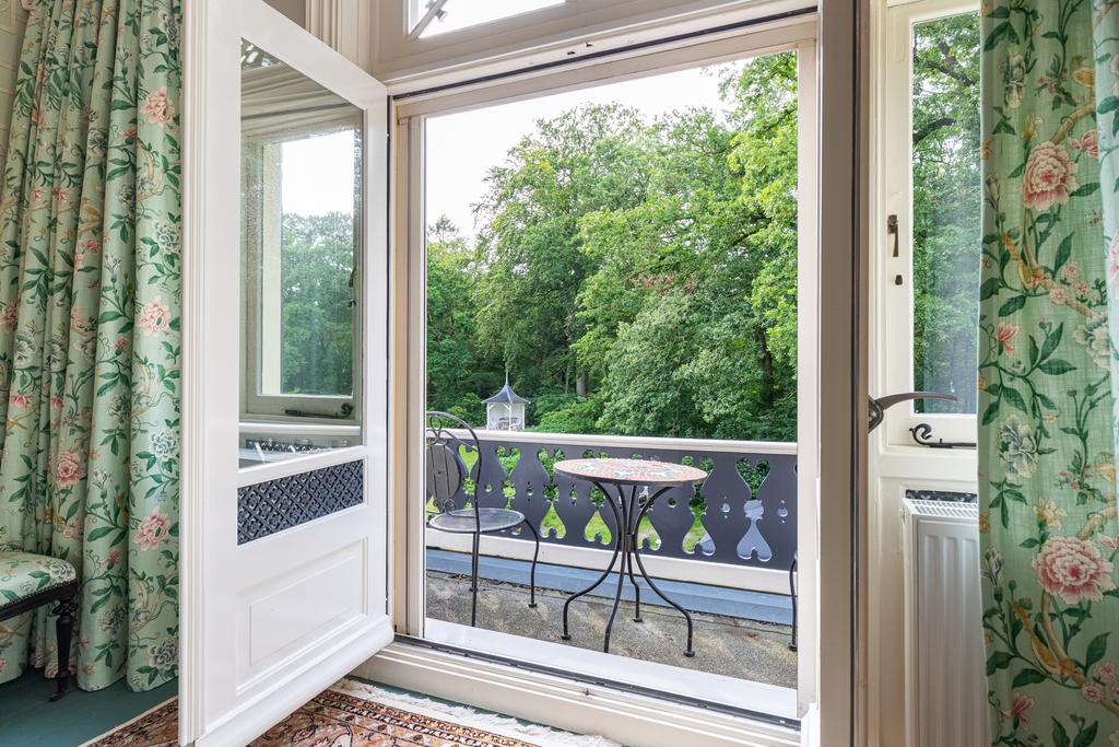 - De Harinxma Balkonkamer (35m²), met een fantastisch uitzicht over het hele landgoed, en het schattige ronde raampje;