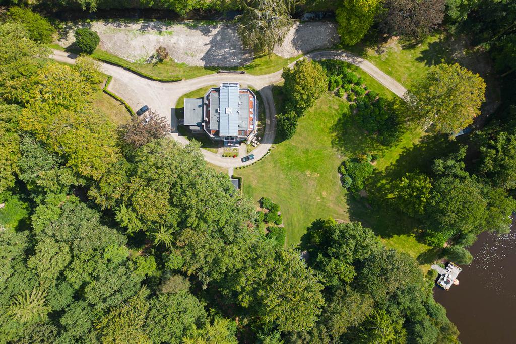 Acht suites telt het huis, alle met een eigen badkamer. De woonoppervlakte is niet mis: 568m², verdeeld over een souterrain, een bel-etage en een zolderverdieping, en de bijbehorende grond bestrijkt ruim 50.000m2. Er is een heuse rotonde rond het huis, zodat het carros gemakkelijk af- en aanrijdt.