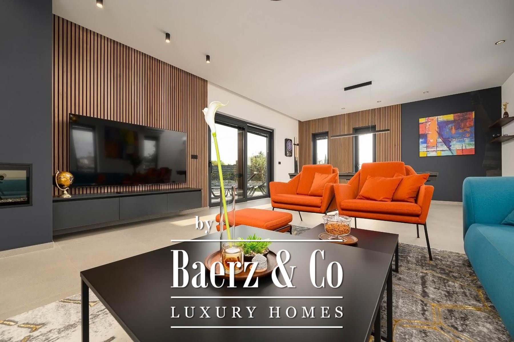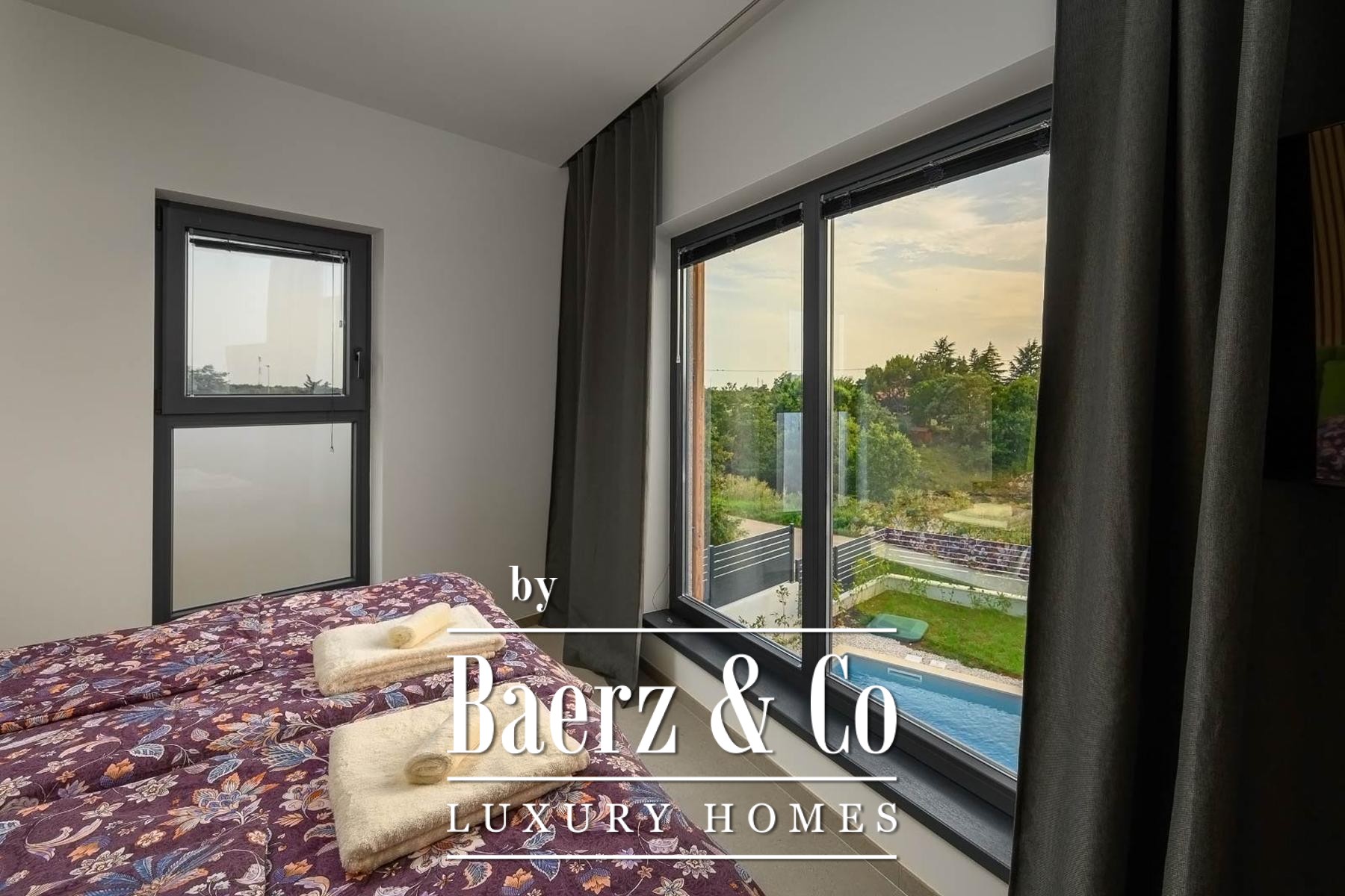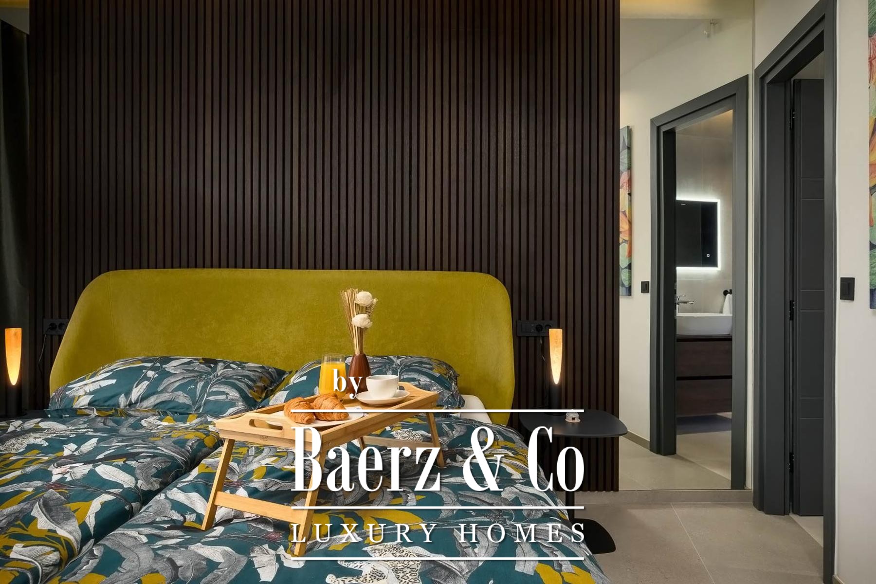 Op de verdieping beschikken drie slaapkamers elk over een eigen badkamer, waarmee rust en privacy voor bewoners of gasten gewaarborgd zijn. Precieze klimaatbeheersing is mogelijk dankzij elektrische vloerverwarming, airconditioning in iedere kamer en een elektrische haard; Modul-designmeubels en Samsung Smart TV’s versterken het gevoel van rust door het hele huis.