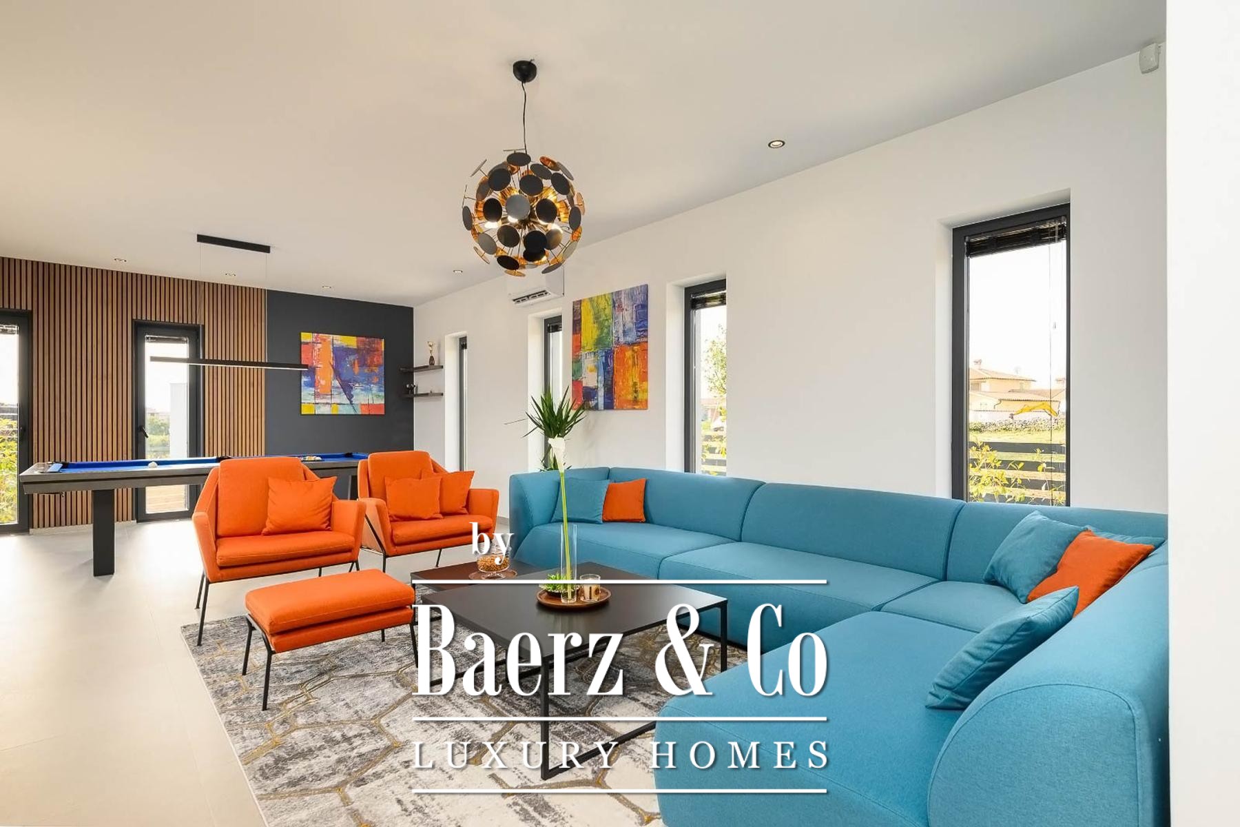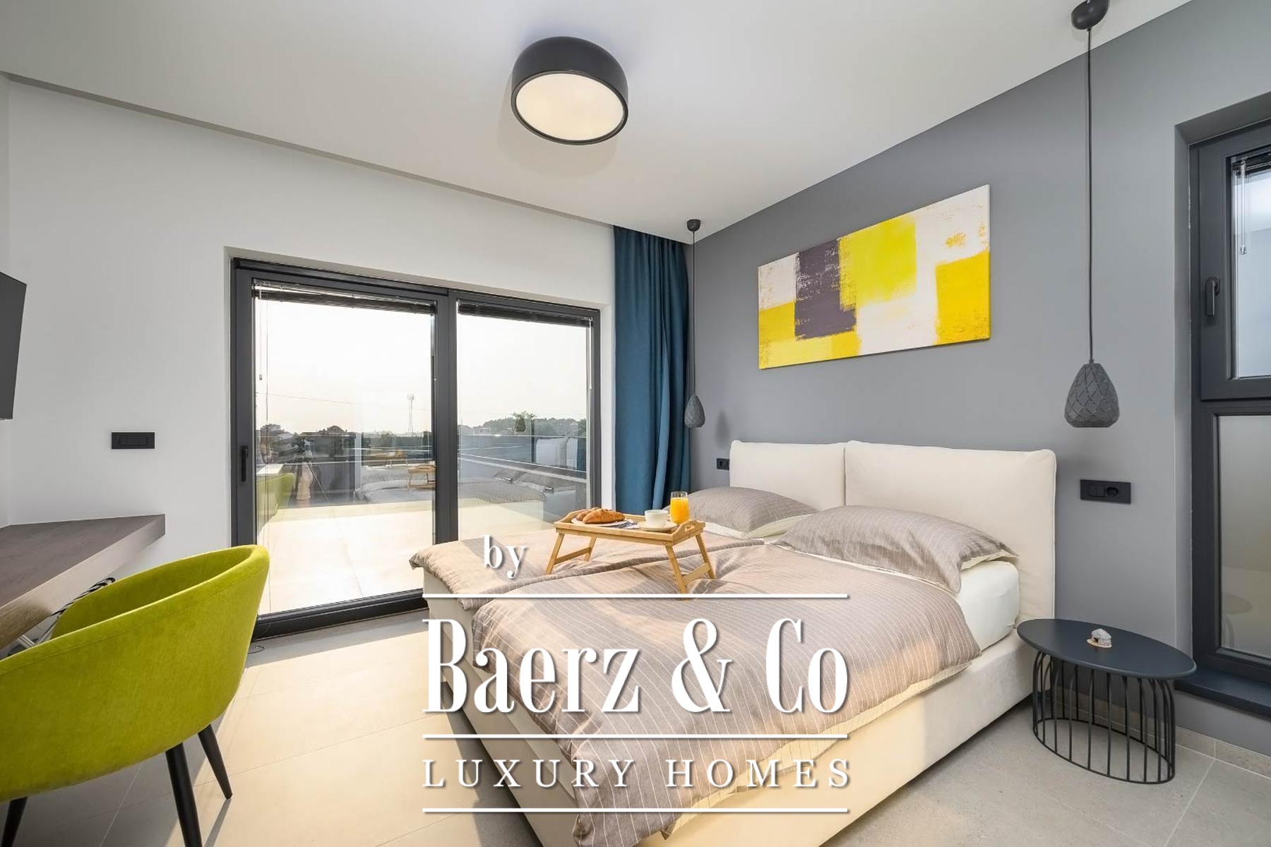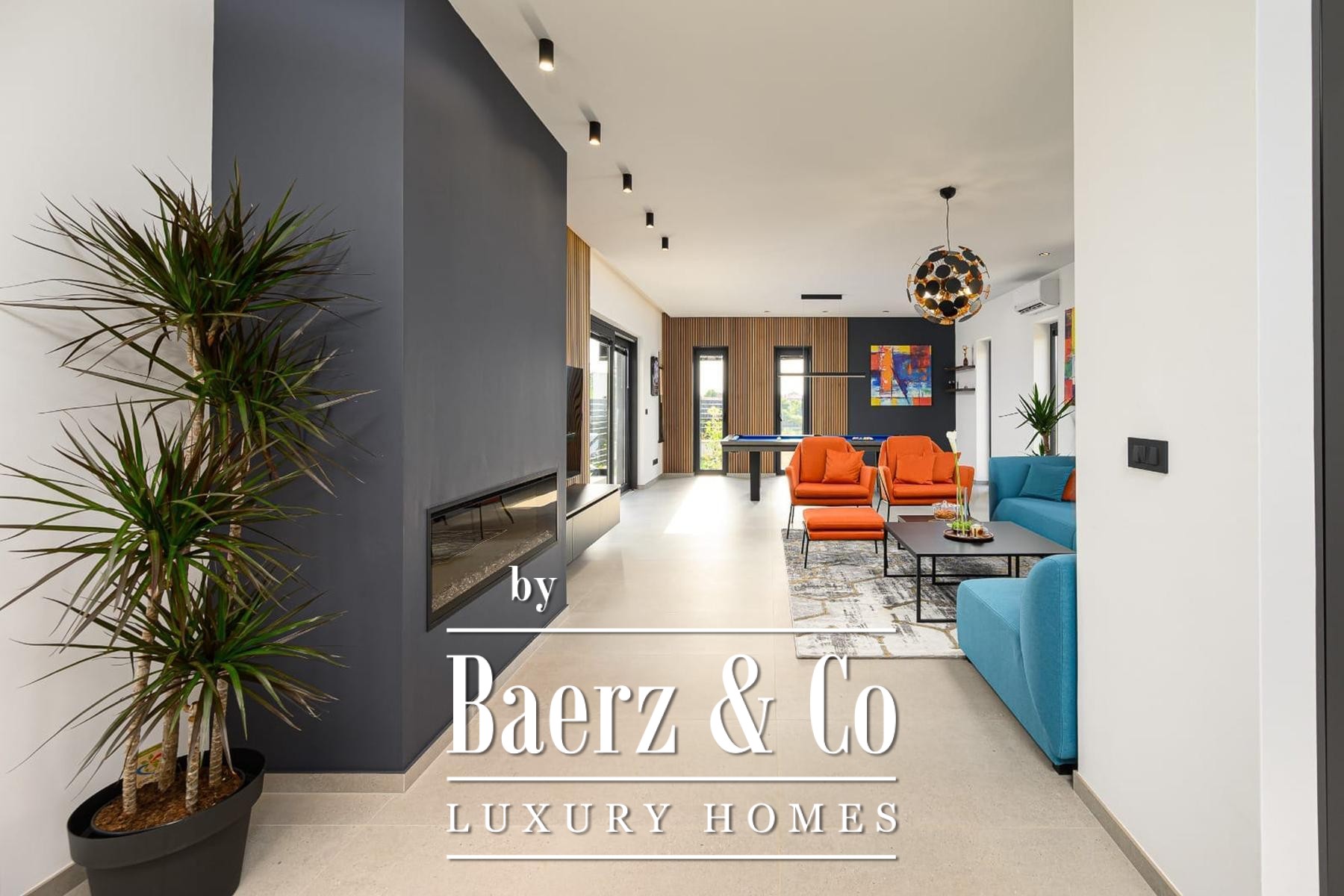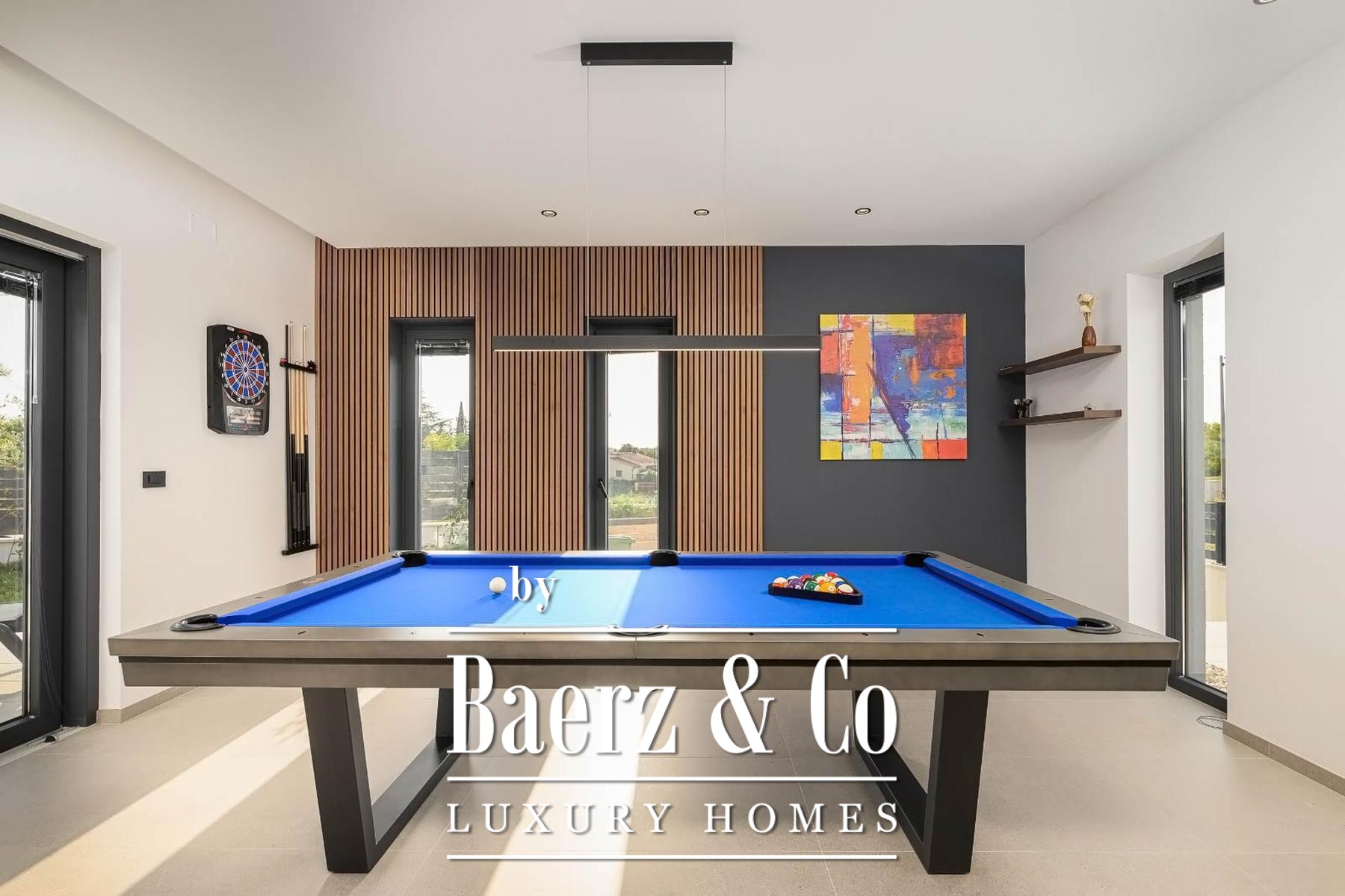 Op de verdieping beschikken drie slaapkamers elk over een eigen badkamer, waarmee rust en privacy voor bewoners of gasten gewaarborgd zijn. Precieze klimaatbeheersing is mogelijk dankzij elektrische vloerverwarming, airconditioning in iedere kamer en een elektrische haard; Modul-designmeubels en Samsung Smart TV’s versterken het gevoel van rust door het hele huis.