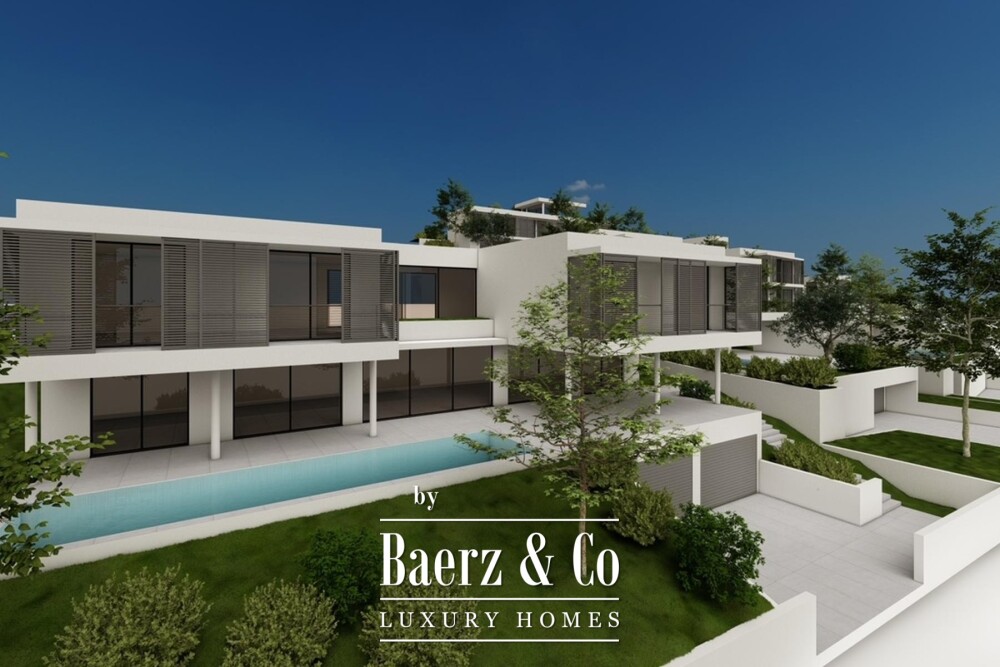 Het souterrain herbergt de garage en technische ruimtes, wat zorgt voor privacy en orde bij binnenkomst. Op de begane grond lopen de open keuken, eet- en woonkamer naadloos over in royale terrassen, waar een zwembad en vrij uitzicht op zee zorgen voor een vloeiende overgang tussen serene interieurs en het buitenlicht. Elk van de vier slaapkamers op de bovenverdieping heeft een eigen badkamer en direct toegang tot een terras, waardoor panoramische vergezichten en individuele privacy behouden blijven.