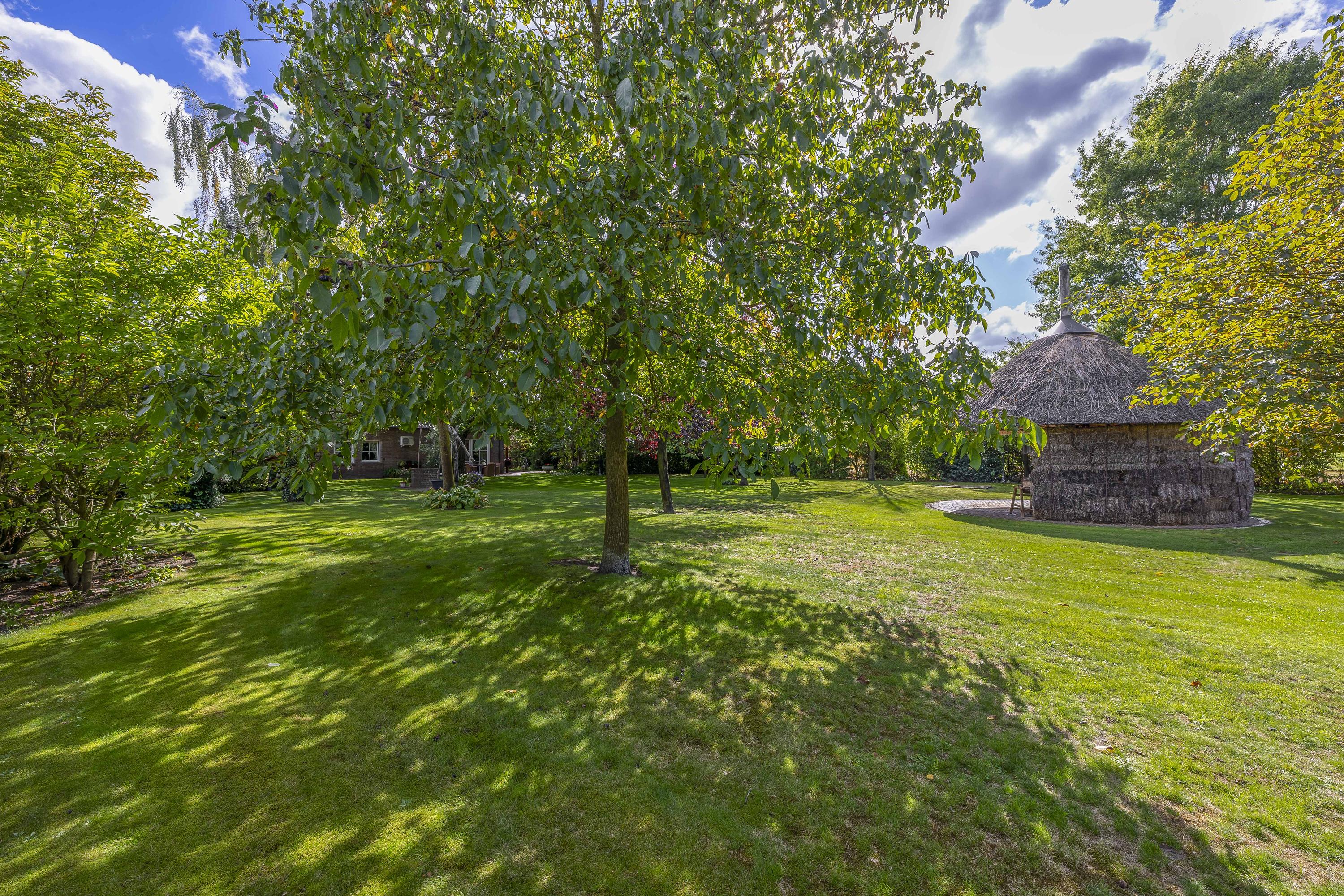 De rondom de woning gelegen tuin is sfeervol ingericht met volop groen, een groot gazon en diverse volwassen