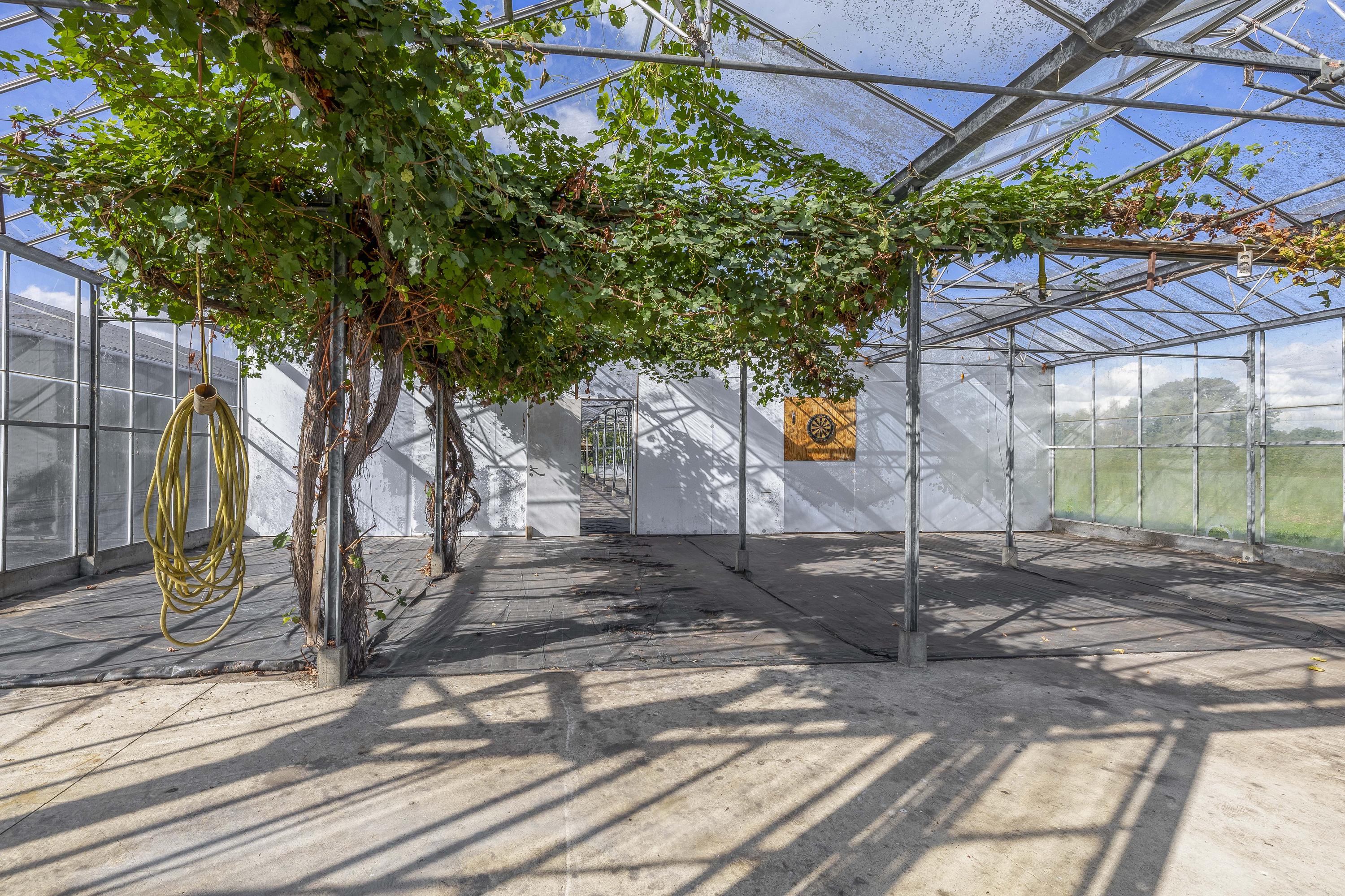 badkamer-en-suite. Daarnaast is er een praktische bijkeuken en een inpandige garage aanwezig. Buiten wacht een royale, verzorgde tuin op u: met o.a. een groot gazon, volwassen bomen die karakter toevoegen, natuurlijke hagen, een terras aan de achtergevel en een overdekt terras. De vrijstaande schuur en de naastgelegen tuinbouwkas bieden volop mogelijkheden voor het vestigen van een (agrarisch) bedrijf. Daarnaast kan ook het aangrenzende perceel cultuurgrond bedrjifsmatig worden ingezet, maar dit is uiteraard ook uitermate geschikt voor het hobbymatig houden van paarden.