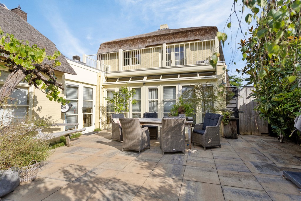 In deze statige jaren ’20 villa ervaart u direct hoe authentieke charme en hedendaagse luxe elkaar kunnen versterken. De woning telt circa 212 m² woonoppervlakte en biedt u royale leefruimtes, een sfeervolle woonkamer met meerdere zithoeken, een prachtige woonkeuken, vier slaapkamers, twee badkamers en een royale tuin die als verlengstuk van het wooncomfort voelt. Het rieten dak en de warme kleurstelling van de gevel geven de villa zijn herkenbare, bijna romantische uitstraling, terwijl binnen alles is gemoderniseerd met oog voor kwaliteit en sfeer. Van de slaapkamer op de begane grond tot het ruime dakterras en de grote vrijstaande garage achter in de tuin: iedere plek vertelt hetzelfde verhaal. Dit is een woning die met zorg is bewoond en door de jaren heen met liefde is onderhouden en verbeterd. Een huis dat groots aanvoelt zonder afstandelijk te zijn en dat u uitnodigt om hier écht te gaan wonen.