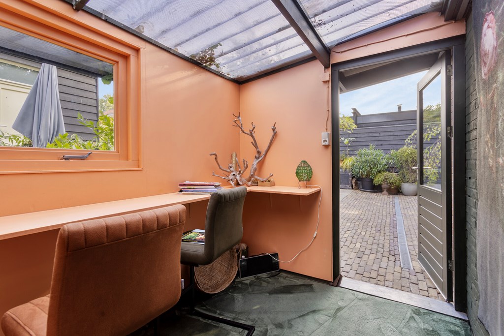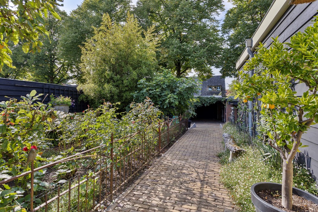 De tuin is zonder twijfel een van de meest bijzondere elementen van deze villa. Op een perceel van 674 m² eigen grond heeft u hier genoeg ruimte, privacy en rust. De tuin strekt zich ver naar achteren uit en biedt meerdere terrassen, sierlijke beplanting en verrassende doorkijkjes. Achterin staat een grote vrijstaande garage met aangrenzend een afsluitbare carport en een berging met dubbele lichtkoepel. Als extra toevoeging is er een knus tuinkamertje, sfeervol afgewerkt en voorzien van een raam om lekker te ontsnappen of creatief bezig te zijn. De tuin is ontworpen om elk seizoen tot zijn recht te laten komen: van het eerste voorjaarzonnetje tot de warme zomeravonden. Het is een plek waar u kunt eten, loungen, tuinieren en ontspannen — alles in uw eigen groene omgeving.