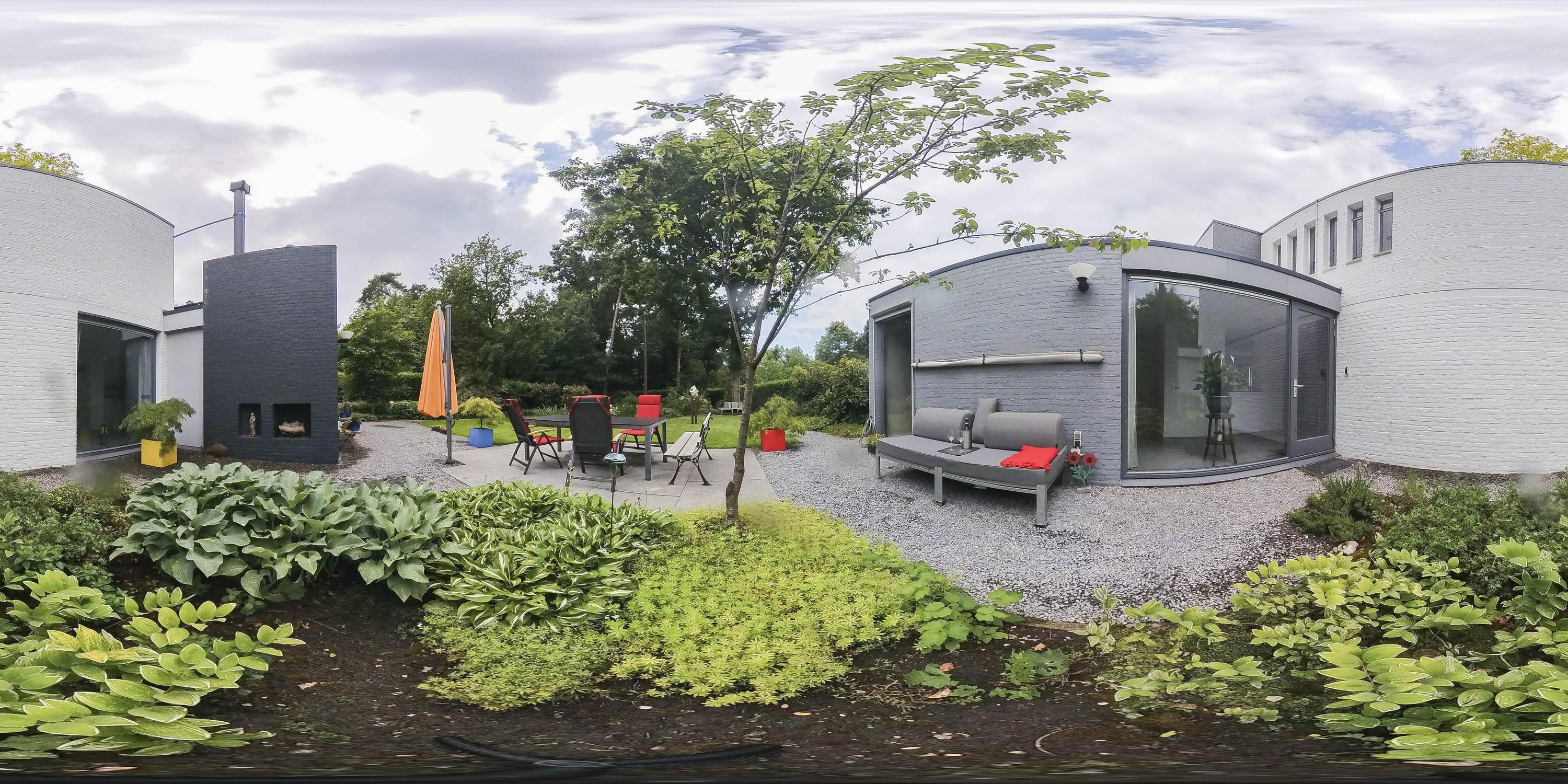 De achtertuin is een ware oase van privacy en rust. Je waant je hier letterlijk in een park omringd door volwassen groen en midden in de natuur. De tuin is rondom afgeschermd door een laurierhaag.. Hier zijn meerdere stroompunten en buitenkraantjes aanwezig, en voor gezellige avonden is er een buitenhaard te vinden! Het geheel is prachtig aangelegd met groot gazon, beplanting en een fraaie vijver. Natuurlijk mag een computergestuurde beregeningsinstallatie hier niet ontbreken. Een prachtige aangelegde tuin met walnotenboom, magnolia's en ook veel bosvruchten: blauwe bessen (25 kg per jaar), bramen en frambozen.