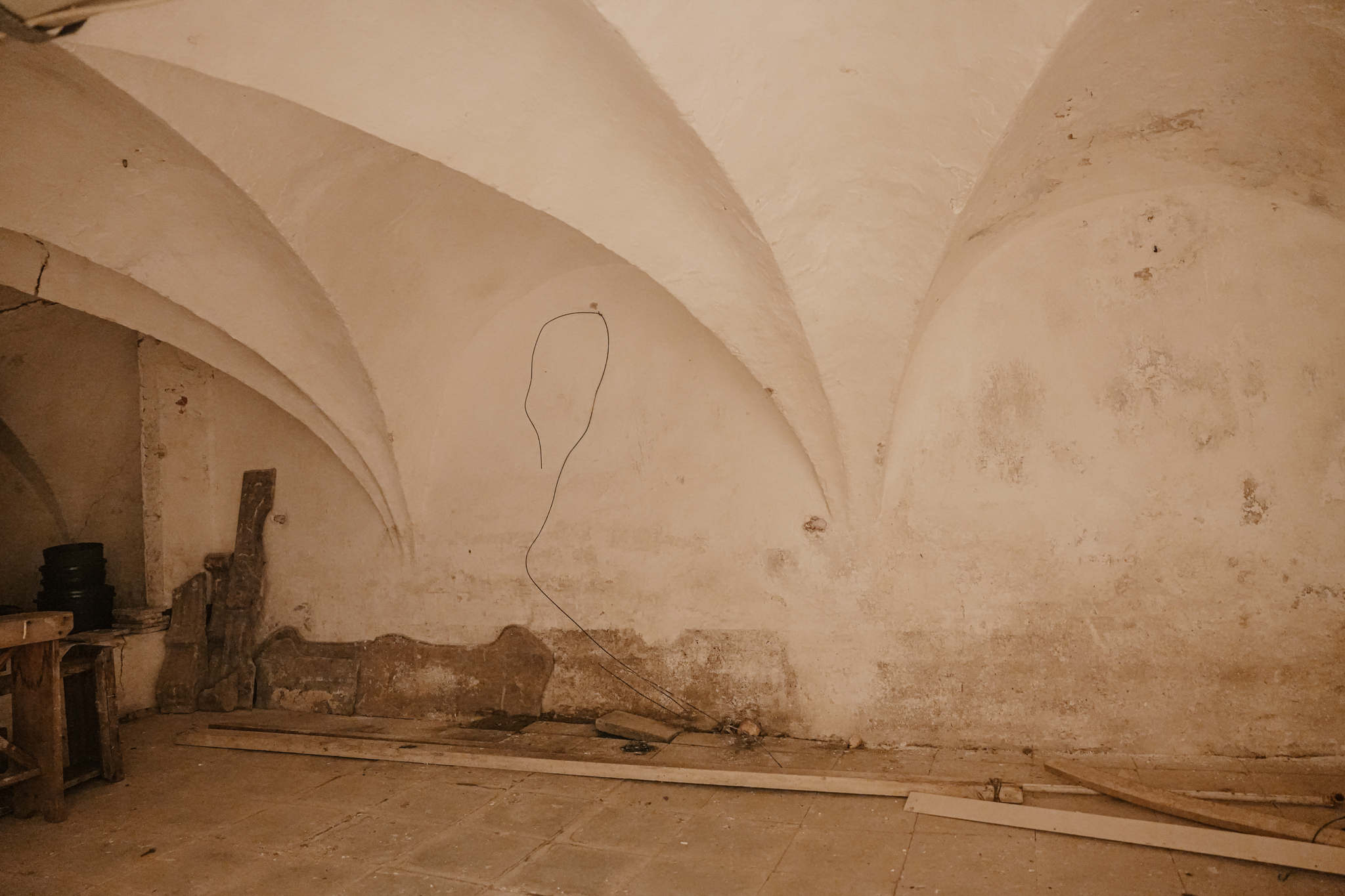 Dubbele middeleeuwse gewelfkelder onder het voor- en achterhuis.